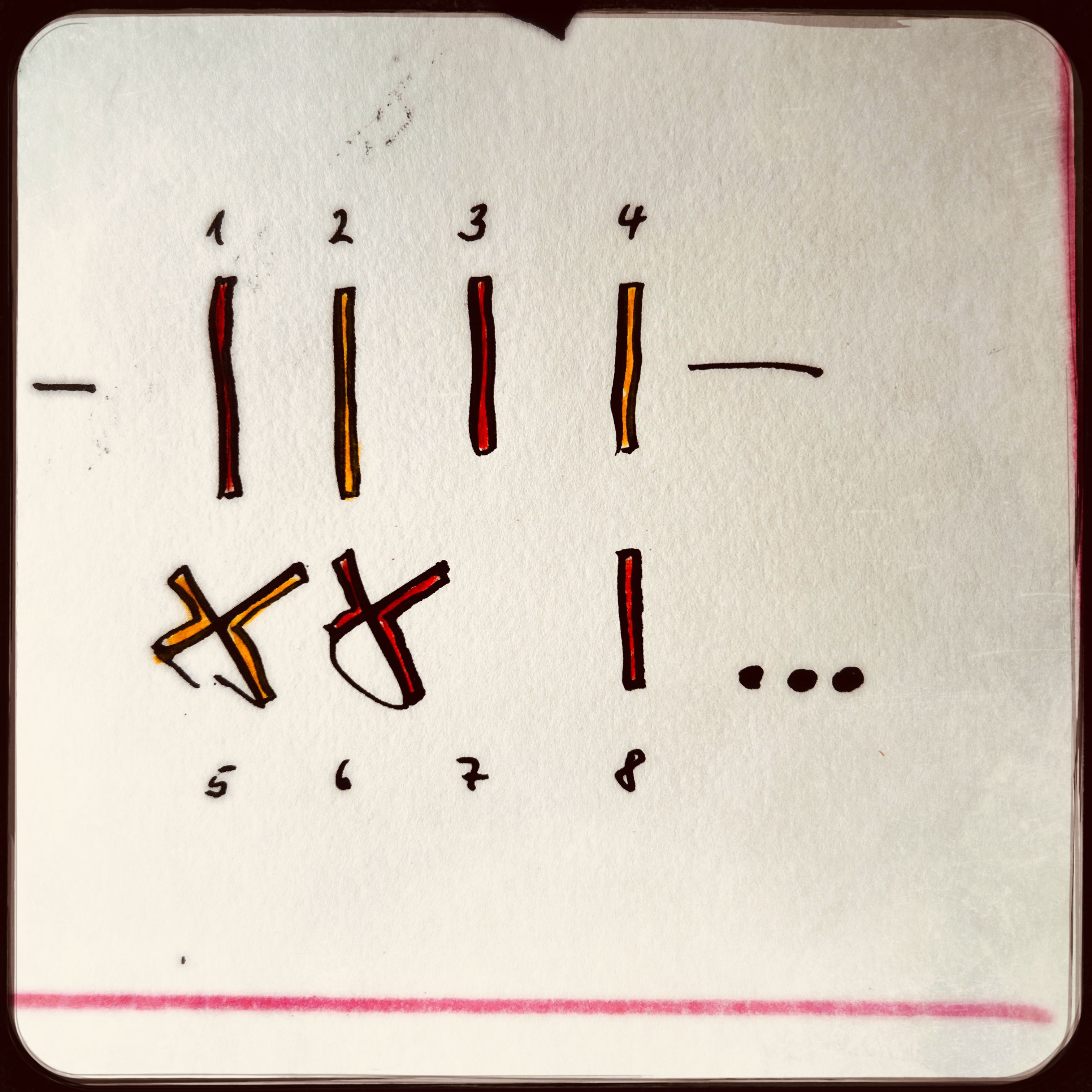 Morgen ist morgen. Übermorgen ist übermorgen und mehr ist aktuell nicht. Wir tun ja immer so, als wenn es ein morgen nach dem übermorgen gäbe oder wir planvoll durchs Leben gehen könnten. Können wir vielleicht auch, aber jeder Plan hat eben nur eine Vorläufigkeit, die ständig durch die konkreten Ereignisse des Tages in Frage gestellt wird. Das verdrängen wir gerne. Heute schaffe ich mir eine zeichnerische Skizze mit der ich zufrieden bin, morgen ist sie schon Vergangenheit und vielleicht der Impuls für mehr. Aber übermorgen? Es kann sich so viel so plötzlich bzw. schnell ereignen. Die Dinge scheinen vom Himmel zu fallen, ständig und plötzlich und unvermittelt. Das Geschehen bis morgen kann ich einigermaßen überschauen.