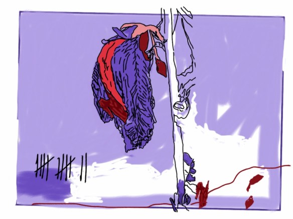 Im Museum Moyland hat er Zeichnungen von Beuys gesehen, die ihn in ihrer Schlichtheit und dem Hingeworfenen sehr fasziniert und vorbildhaft inspiriert haben. Also zeichnet er nun seine eigenen Skizzen, digital, er kritzelt sie, er probiert das Zeichenbrett aus und versucht seine Entwürfe so aussehen zu lassen, als seien sie nicht digital erstellt, sondern analog hingehuscht geworden.