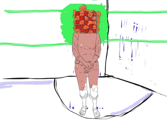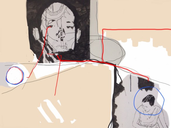 Er, Juergen, gehe so vor, dass er von der Kontur her komme, zeichnerisch das Blatt fülle und durch die farbige Fläche den Figuren das Volumen gebe. Und ganz wichtig: er arbeite mit Layern, d.h. mit verschiedenen Ebenen, die sich übereinander legen lassen, in ihrer Transparenz verändern lassen und baue so Schicht für Schicht das Bild auf. Mit den Layern lasse sich auch gut experimentieren und verschiedene farbliche sowie kompositorische Varianten ausprobieren. Und er radiere viel, auf den Layern, weil durch die Radierlöcher die anderen Schichten zum Vorschein kämen und das nicht immer kalkulierbar sei und daher dem ganzen Bild viel Lebendigkeit gebe. Juergen meinte, er sei ja auch kein Maler, sondern eher ein Zeichner.