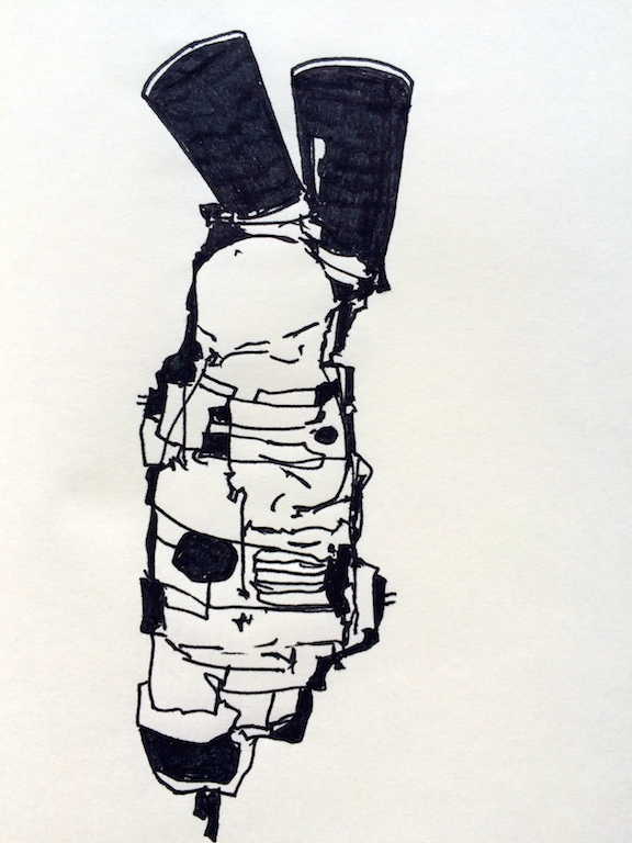 „Hermann der Vernetzer“ zeigte rudimentäre Fotokopien von ein paar Bildern, die den Isolator in Bezeihung setzten zu Raum und anderen Gegenständen. Das Ergebnis sei trashig, meinte er. Und das hatte wohl seine Gründe, denn, so sagte Juergen mir, „Hermann, der Vernetzer“ stecke wohl in einer Schaffenskirise, wenn nicht sogar Identitätskrise. Er meine, er sei halt anders als andere. Und er kapsele sich ab. Der Isolator sei er selbst, so glaube er. Und er frage sich nach dem Sinn des Lebens in einem künstlerischen Elfenbeinturm.