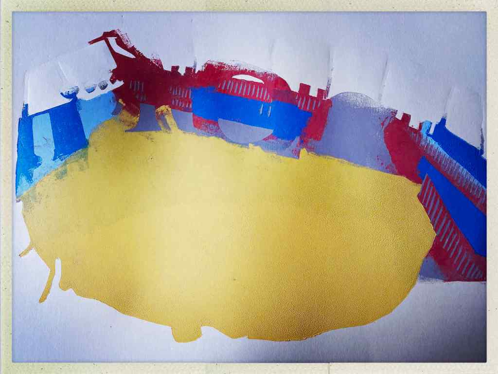 Für Juergen und mich war es heute der offiziell erste Tag zum neuen Thema: Faltungen, Faltungen, Faltungen. Wir sind durchs Atelier geschlendert, haben versucht alle die Werke einzusammeln, die Spuren von Faltungen aufweisen – ein paar wenige fehlennoch – und haben sie dann fotografiert und anschließend an die Präsentationswand gehängt. Das war der Einsteig. Nichts, was weltbewegend war, uns aber eingestimmt hat. Es war der Anfang. Es war wie ein treiben lassen in der Zeit. Einen genauen Plan gibt es ja nicht, nur Fragen und mögliche Handlungsanweisungen. An denen orientiert sich Jürgen im Moment aber noch nicht allzu sehr. Dieses Treibenlassen habe etwas Beruhigendes meinte er.