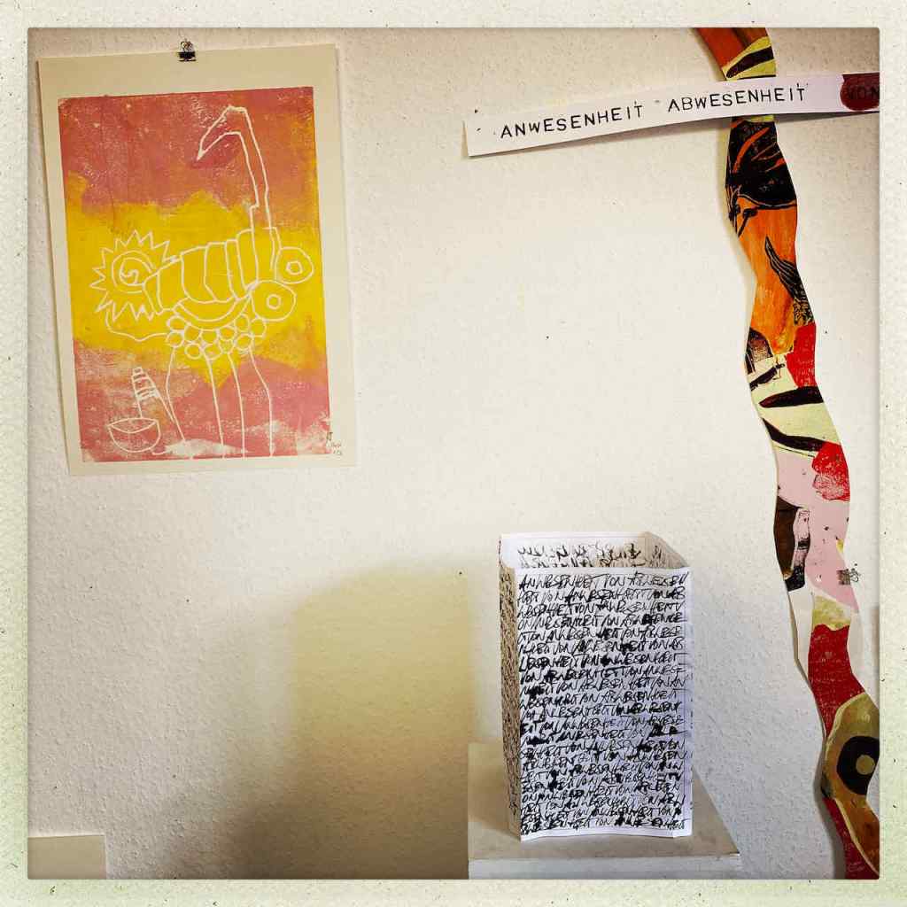 Der Zuwachs an allem möglichen an verwendbarem Material aus dem Umfeld des Ateliers nahm große Ausmaße an. Alles konnte Verwendung finden – von der Kaffeetasse bis hin zu Rentenpapieren. Und die Erkenntnis: alles kann Verwendung finden und findet sich zufällig und macht Sinn und erzeugt Wirkungen.