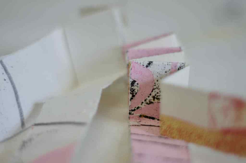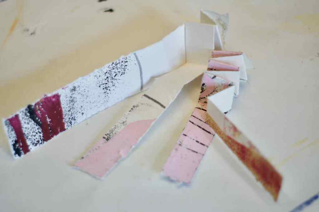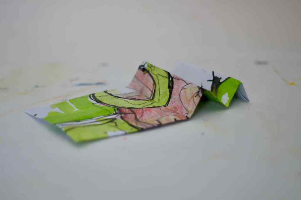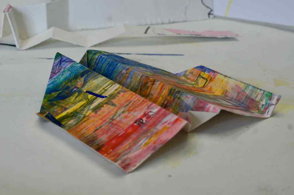 Was soll die Faltung nicht bewirken? Wenn du am Ende des Projektes angelangt bist, dann sortiere die Werke aus, die Deinem Anspruch absolut nicht entsprechen. Begründe! Gib ihnen eine andere Wertigkeit, indem Du sie fotografisch in einem Heftchen bündelst.
