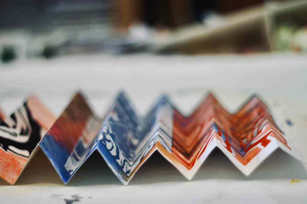 Wie bringe ich Faltungen und Restepapier zusammen? Fische mit geschlossenen Augen fünf der größten Blatter aus dem Stapel an Restepapier und falte eine Hexentreppe, eine Schachtel, ein Dach, ein Kanu, eine Ziehharmonika, einen Zylinder und eine freie Figur und vereine sie zu einem Ganzen.