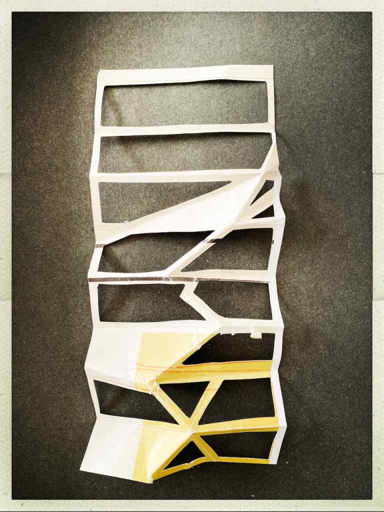 Heute im Atelier dann gab es zwei Punkte, die besonders hervorstachen: Jürgen hat versucht einige der Grundformen, die er schon an den Tagen letzte Woche gefaltet hatte, zu verdoppeln. „Der Schatten ist der Zwilling“ ließ grüßen.