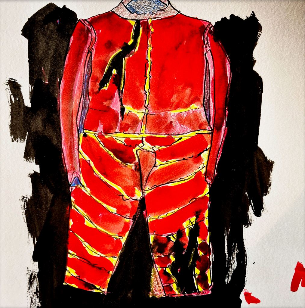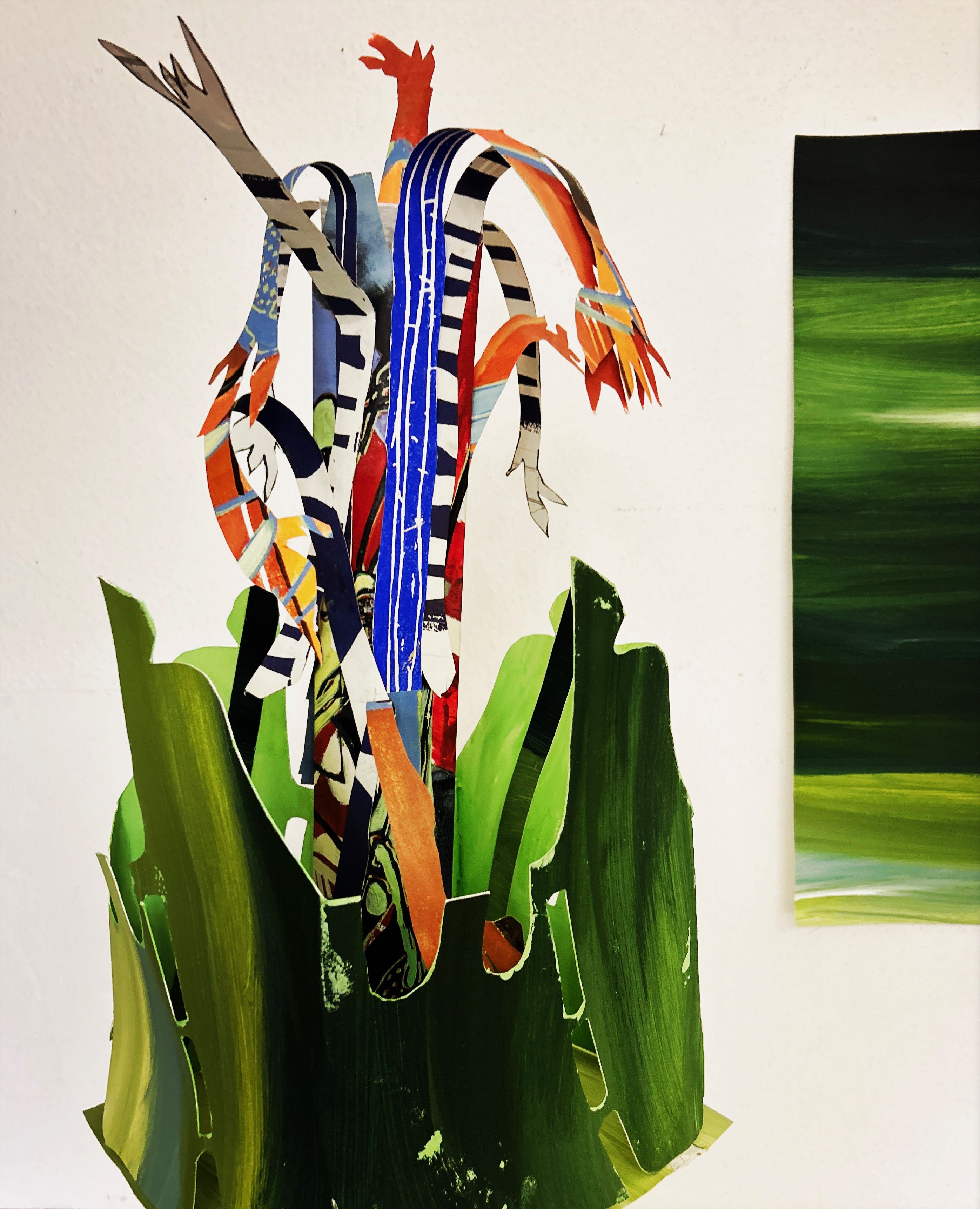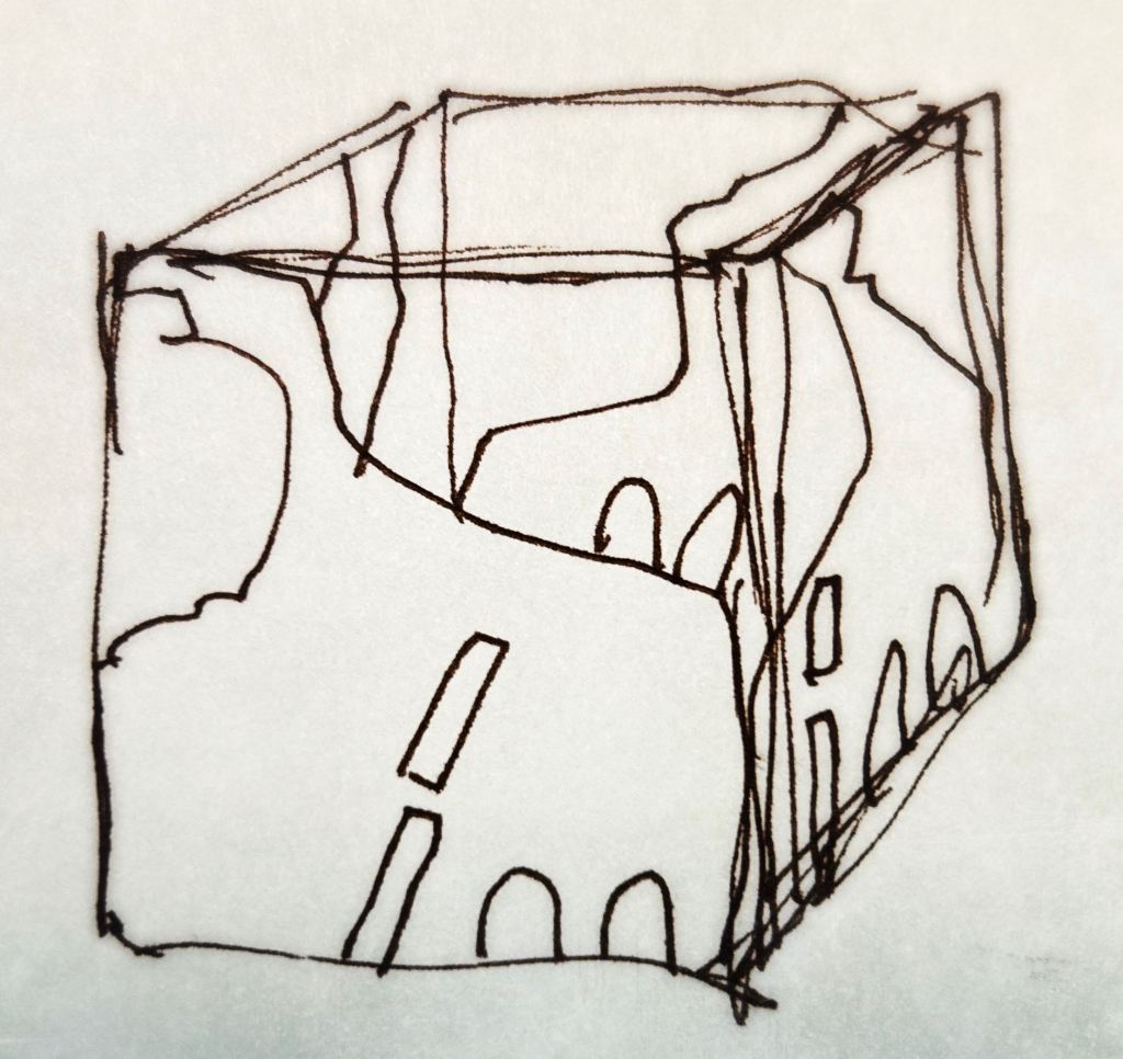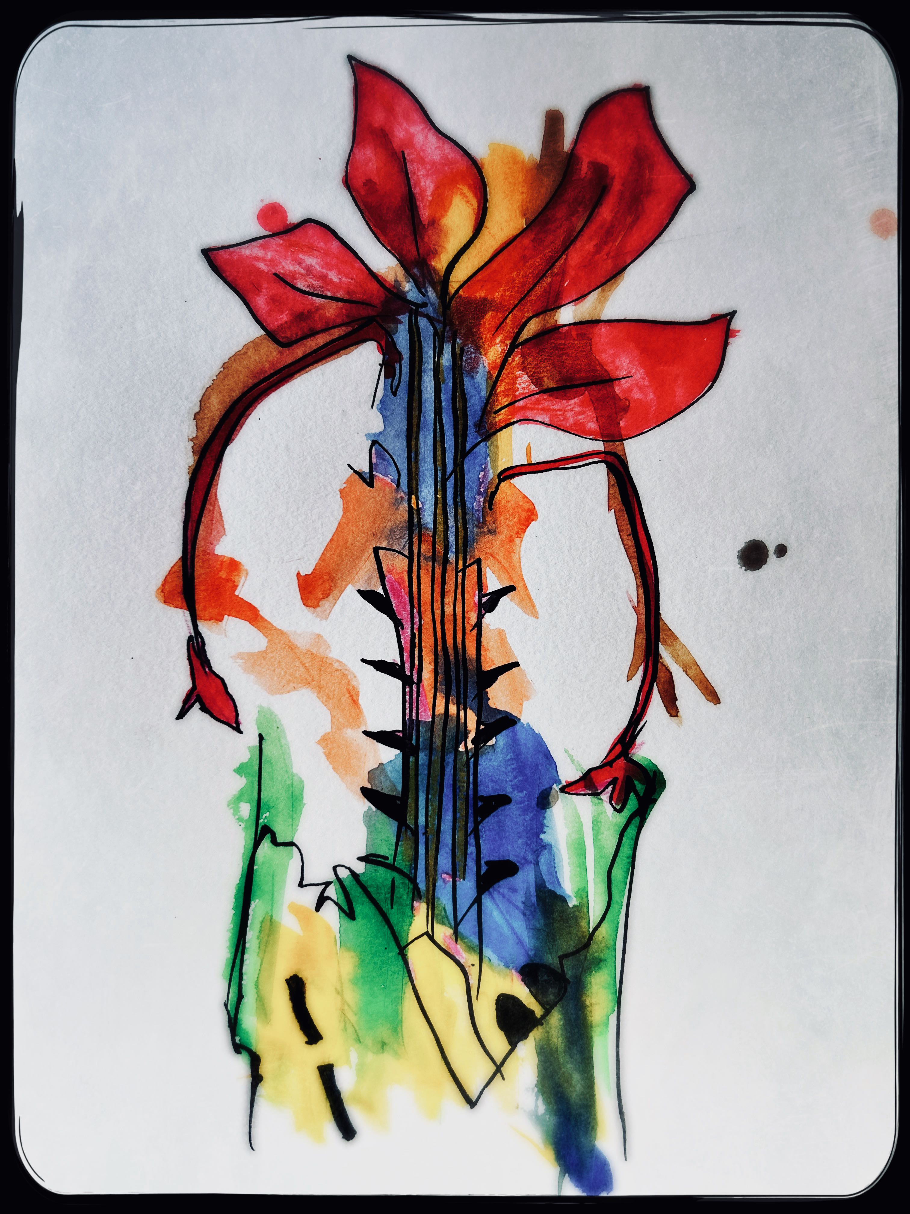 Und der dritte Durchlauf zum Thema startet nun mit dem Foto des letzten Papierobjektes, s. oben, und einigen daraus resultierenden hingeworfenen Digital- oder Aquarell- Skizzen: