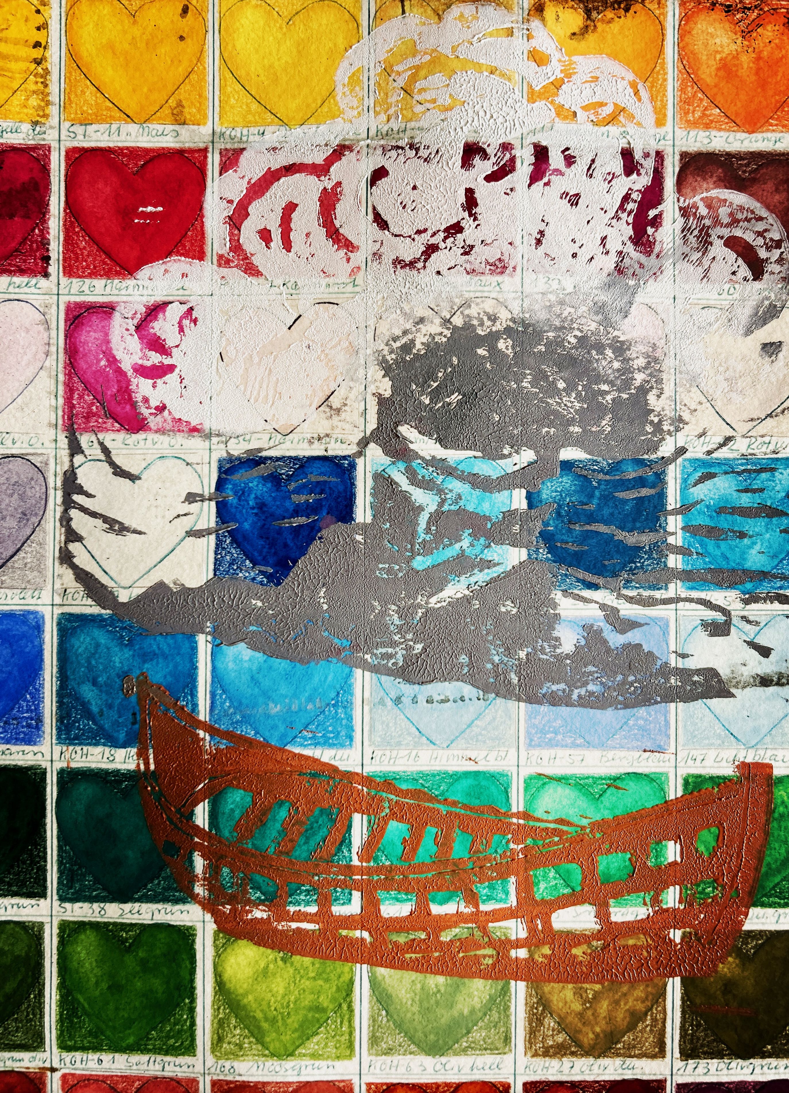 massiv | wuchtig | geschlossen | kräftig: was druckgrafisch als Hintergrund zum Themenmotiv „Hoffnung“ gedacht war, entwickelt ein Eigenleben als farblicher Block. Und dient als Vorlage für ein Papierobjekt. Ob das Thema „Hoffnung“ dabei verloren geht, wird sich zeigen. Mal schauen.