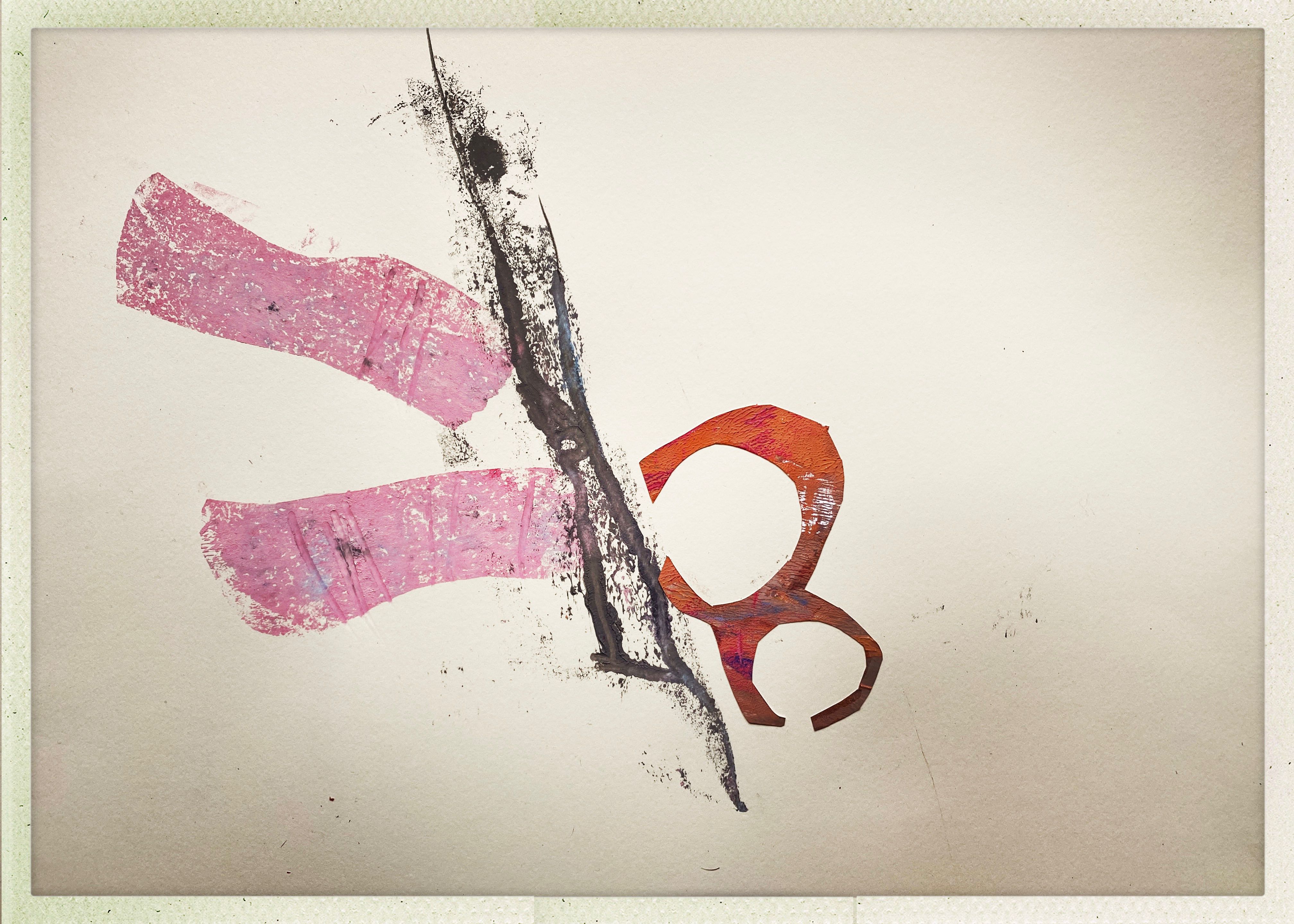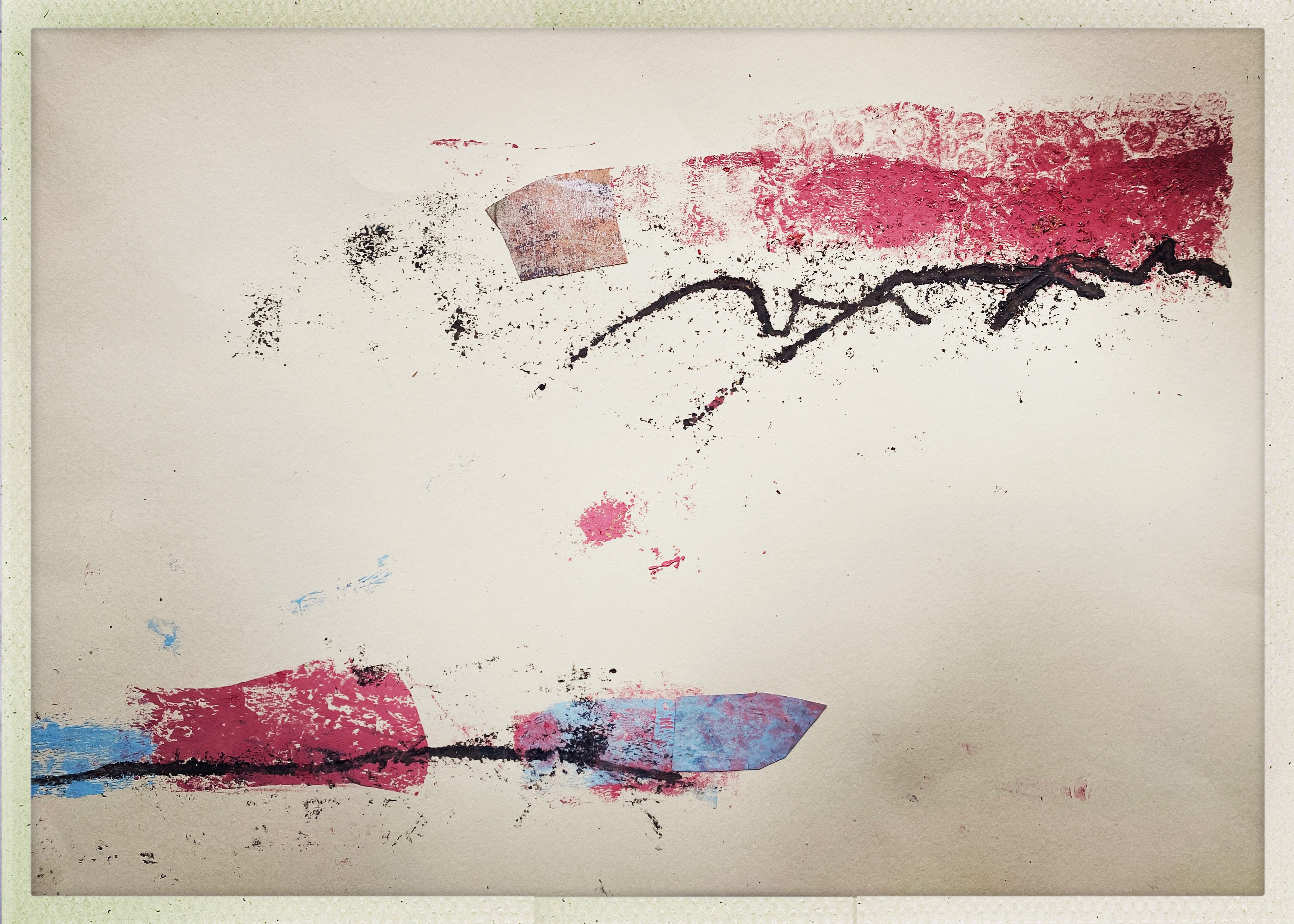 Jürgen räumte nach den Tagen im Zwickelbüro das Atelier auf und dabei sind im Nachgang noch einige Monotypien entstanden.