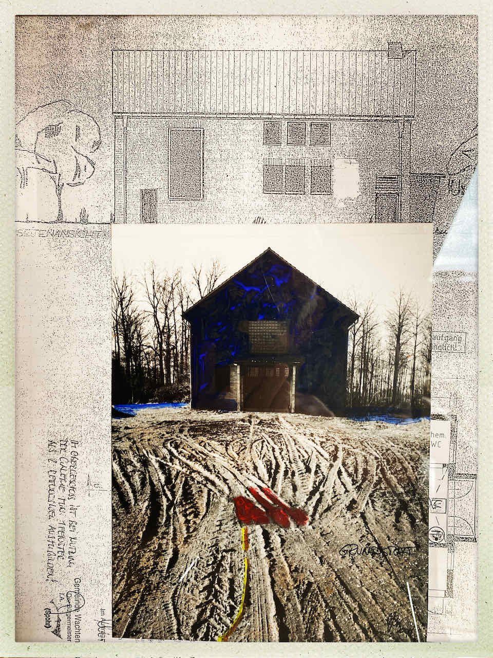 Normalerweise ist er ja jetzt mit dem Wohnmobil unterwegs und arbeitet mit seinen Ortsmarken, den Fundstücke vor Ort, die er abbildet und bearbeitet. Die Pandemie macht diese Art des Reisens momentan unmöglich. Deshalb liegt jetzt der Focus auf einen Ort, auf eine Stelle, hier vor Ort, dort, wo Jürgen und ich leben.