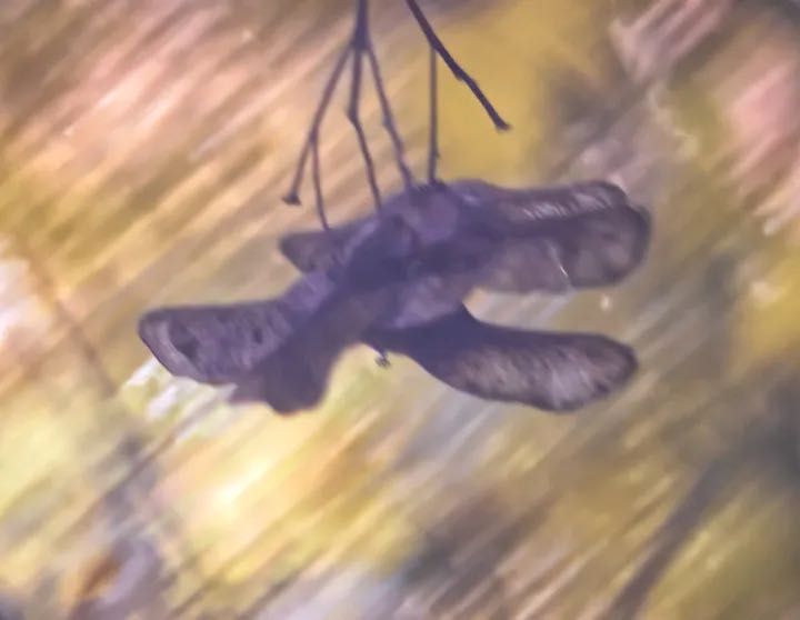 Der Löwe sagt zu seinem Foto: “Mein erster Gedanke … welch ein Ölgötze … Eine Büste mit Kopfhörer … und noch in Schwarz-Weiß … nee … da bekomme ich einen Depri … aber wie die Kurve zu einem anderen Thema kratzen … hmm unseren Postillion auf der Brücke … zu nahe an Buchalovs Motiv dran … also einfach mal den Dreifachaufsteckschlitzblendenklapperatismus mitnehmen … vielleicht gibt es eine Gelegenheit … hier ein Bild dort ein Bild … nichts und wieder nichts … Ahornpropeller … kann man mitnehmen … oh der Hintergrund, nicht schlecht … weitergegangen … Propeller … die machen doch Lärm, die technischen … aber die Natur … Stille … Plätschern … Vorgelgezwitscher … das ist Löwens Musik … da braucht es keine Kopfhörer … die braucht der Löwe für die Remotekonferenzen in der Arbeit zu genüge … und so war die Verbindung zu Buchalovs Motiv geschafft … und ein buntes dazu … Das Bildmotto lautet daher: “Die lautlosen Propeller“.”