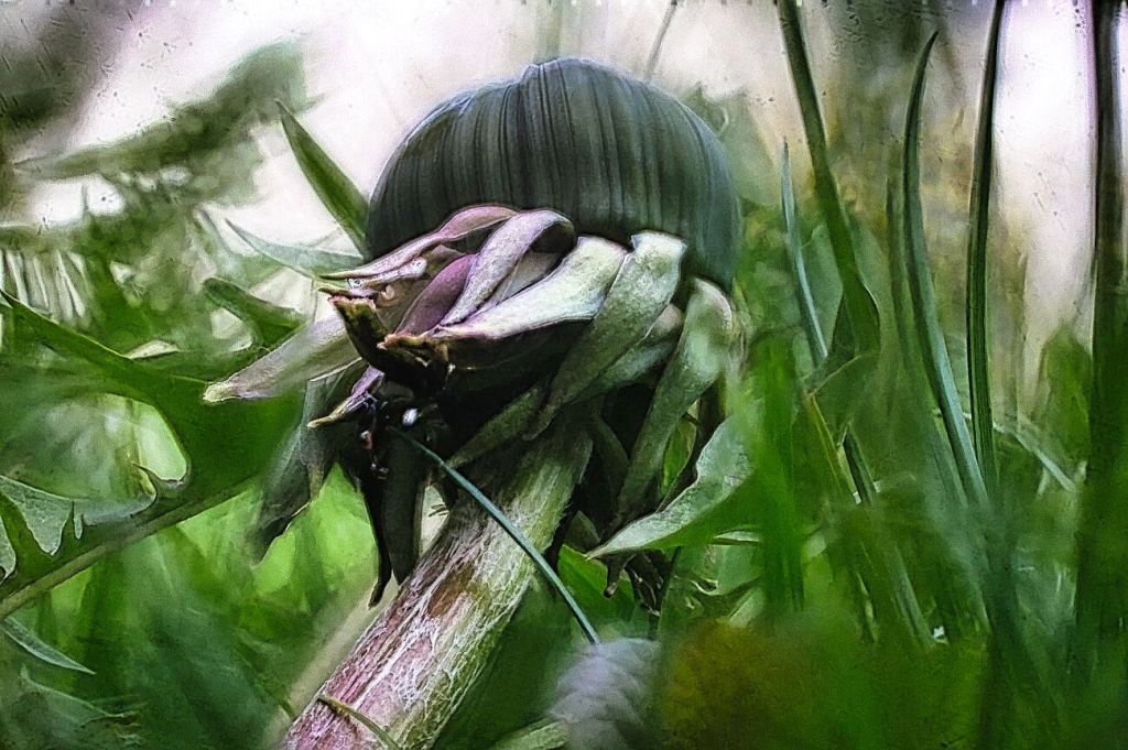 Buchalov sagt zu seinem Foto: „Das Ausgangsbild kam bei mir kugelmässig rüber: eine Kugel? Eine Raumstation? Beim Durchstreifen im Atelier fand ich dann eine größere Papierkugel. Sie wurde auf der „Papp-Bühne“ platziert und bei grauem Tageslicht ohne zusätzliche Beleuchtung fotografiert, mit der Sony A7 II und einem Nikon Sigma Zoom 28-105mm. Die Entscheidung für schwarz/weiss war durch das Vorgängerbild vorgegeben. Die Unschärfe war gewünscht. Und die Kugel sollte angeschnitten werden – wegen der Komposition. Das wars.“