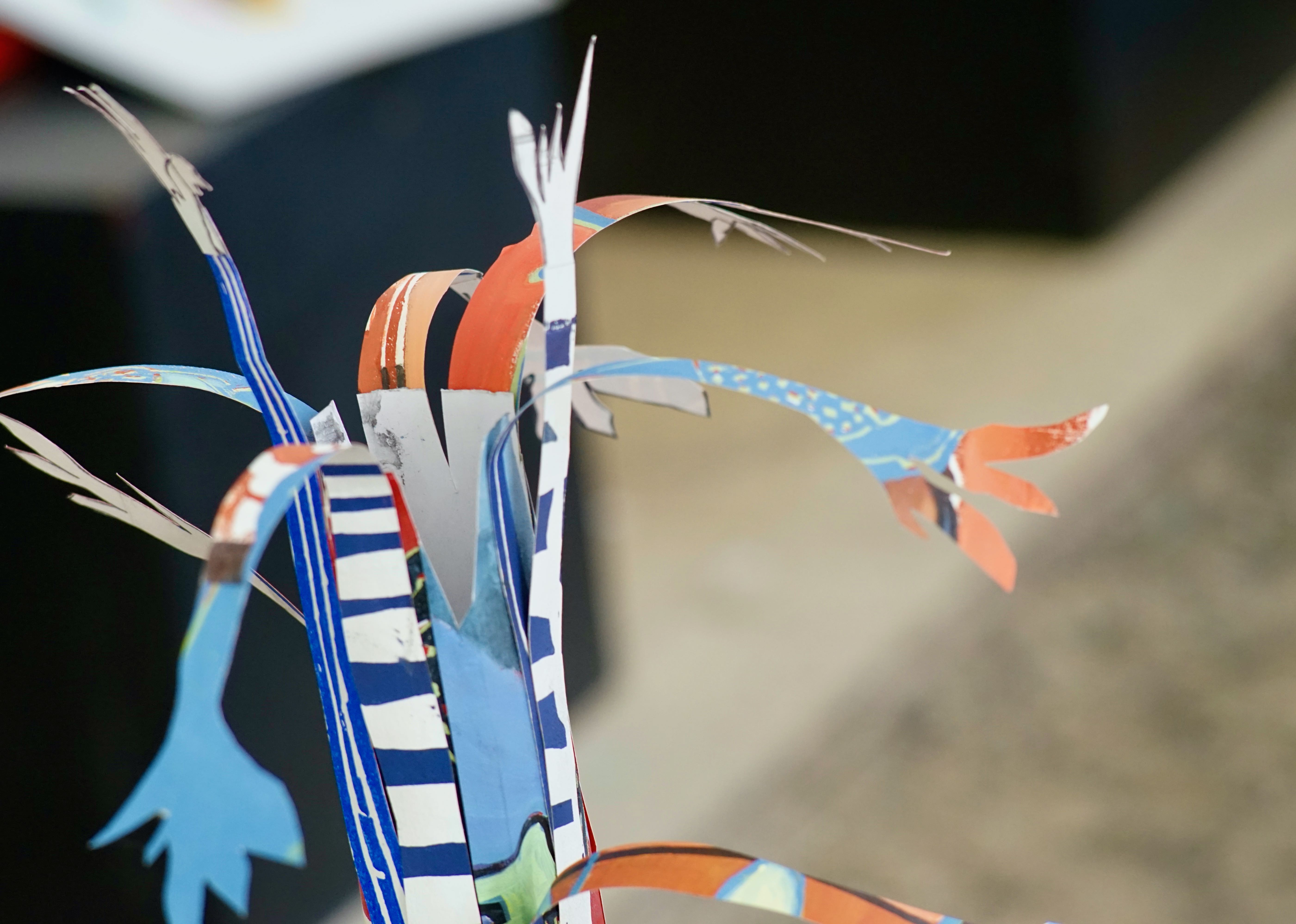 Die „Kunst mit einfachen Mitteln“ verwendet bescheidene und zugängliche Materialien wie Papier, Pappe, Kleber, Restepapier, Verpackungsmaterial und Farbe um Papierobjekte entstehen zu lassen.