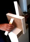 Über die Frage, was denn nun Perfektion sei, ob sie erreichbar sei, wann man die Entscheidung über das Unfertige als Perfektes trifft, darüber sind wir dann bei der Kunst nach dem Baukastenprinzip gelandet und ihm, Rudolf, sei eine solche Kunst sehr nahe. Baukastenkunst: wie mit einem Kinderbaukasten mit geometrischen Grundformen „spielen“, Kombinationen versuchen, experimentieren und aus einem Entwurf dann eine Skulptur anfertigen. So war das gemeint.