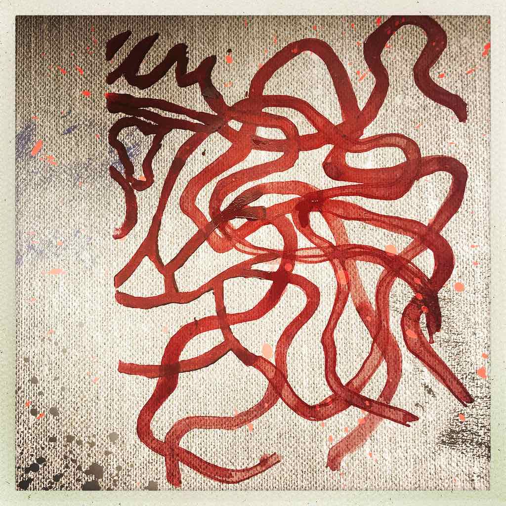 Schlangen sind nicht Jürgens Ding. Er sagte mir, dass er Angst vor diesen Tieren habe. Insbesondere die Würgeschlangen möge er gar nicht. Im Atelier lag noch eine Skizze von einem Baumwürger, vor längerer Zeit gezeichnet. Der wurde nun zum Motiv für seinen Linolschnitt.