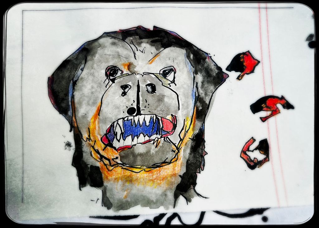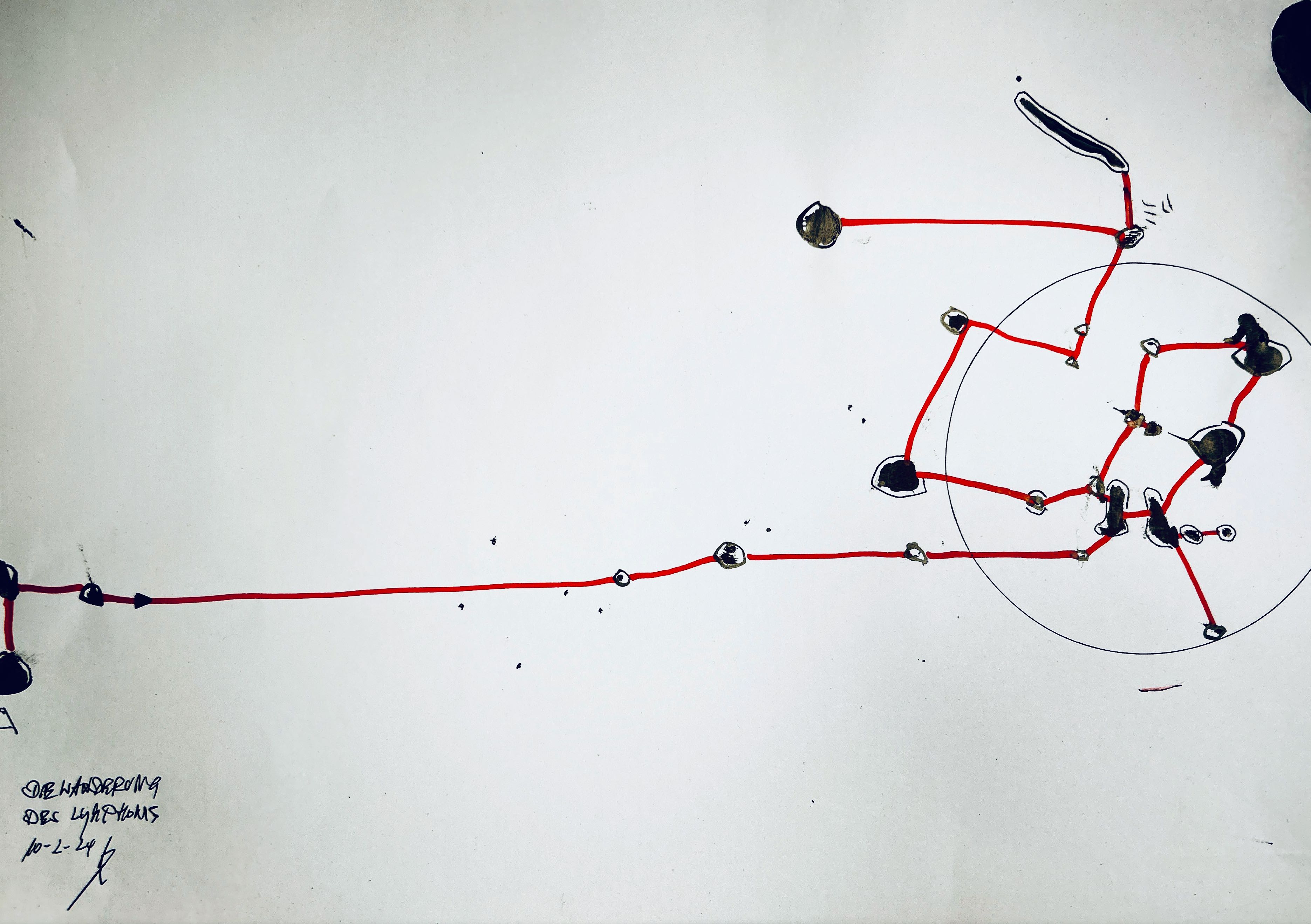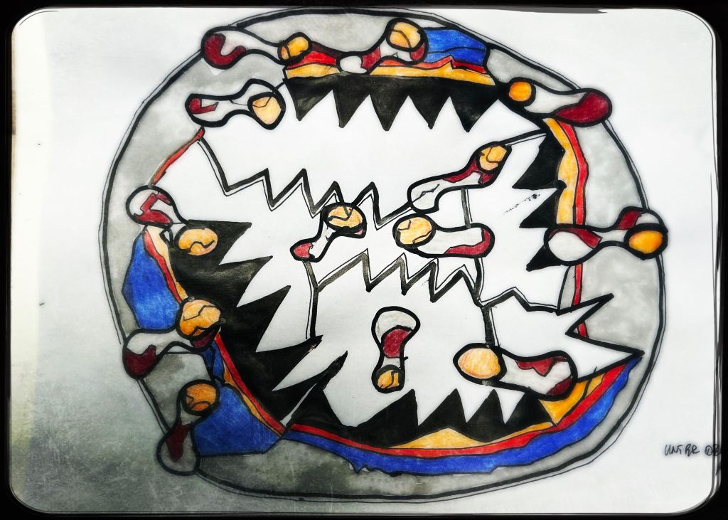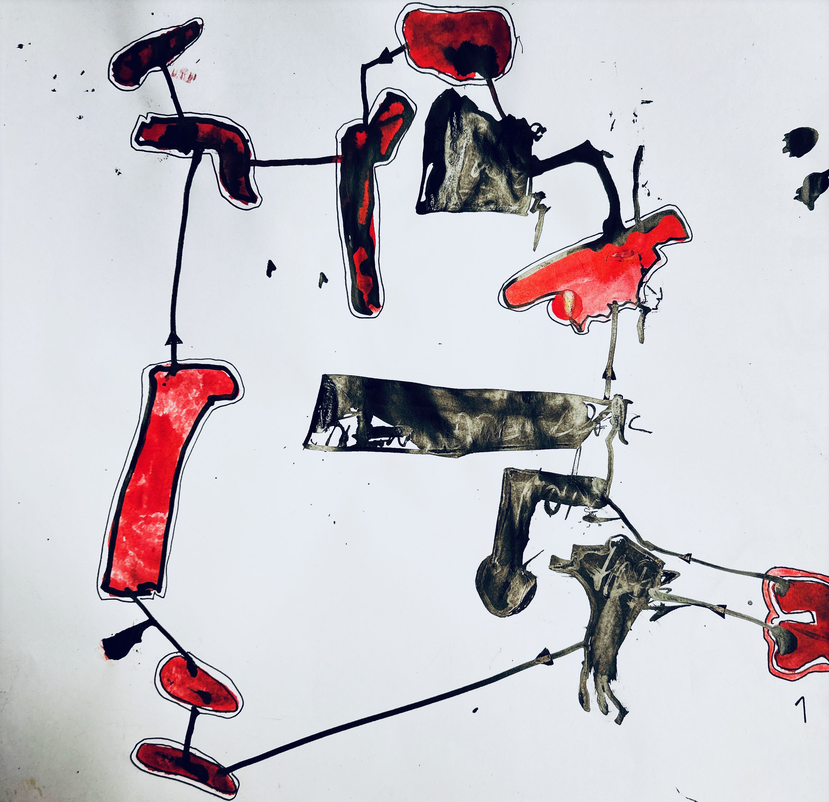 Und der dritte Durchlauf zum Thema startet nun mit dem Foto des letzten Papierobjektes, s. oben, und einigen daraus resultierenden hingeworfenen Digital- oder Aquarell- Skizzen: