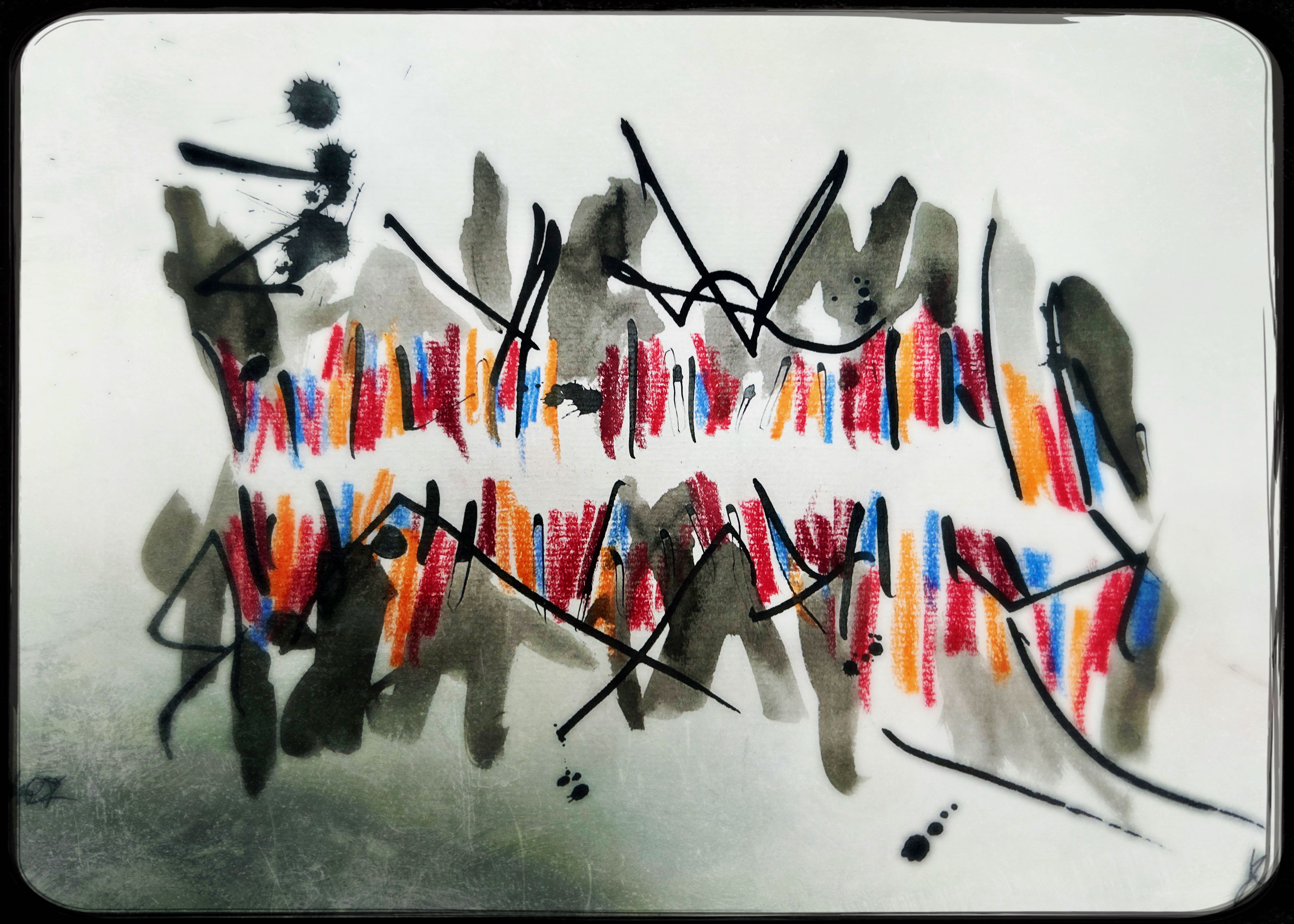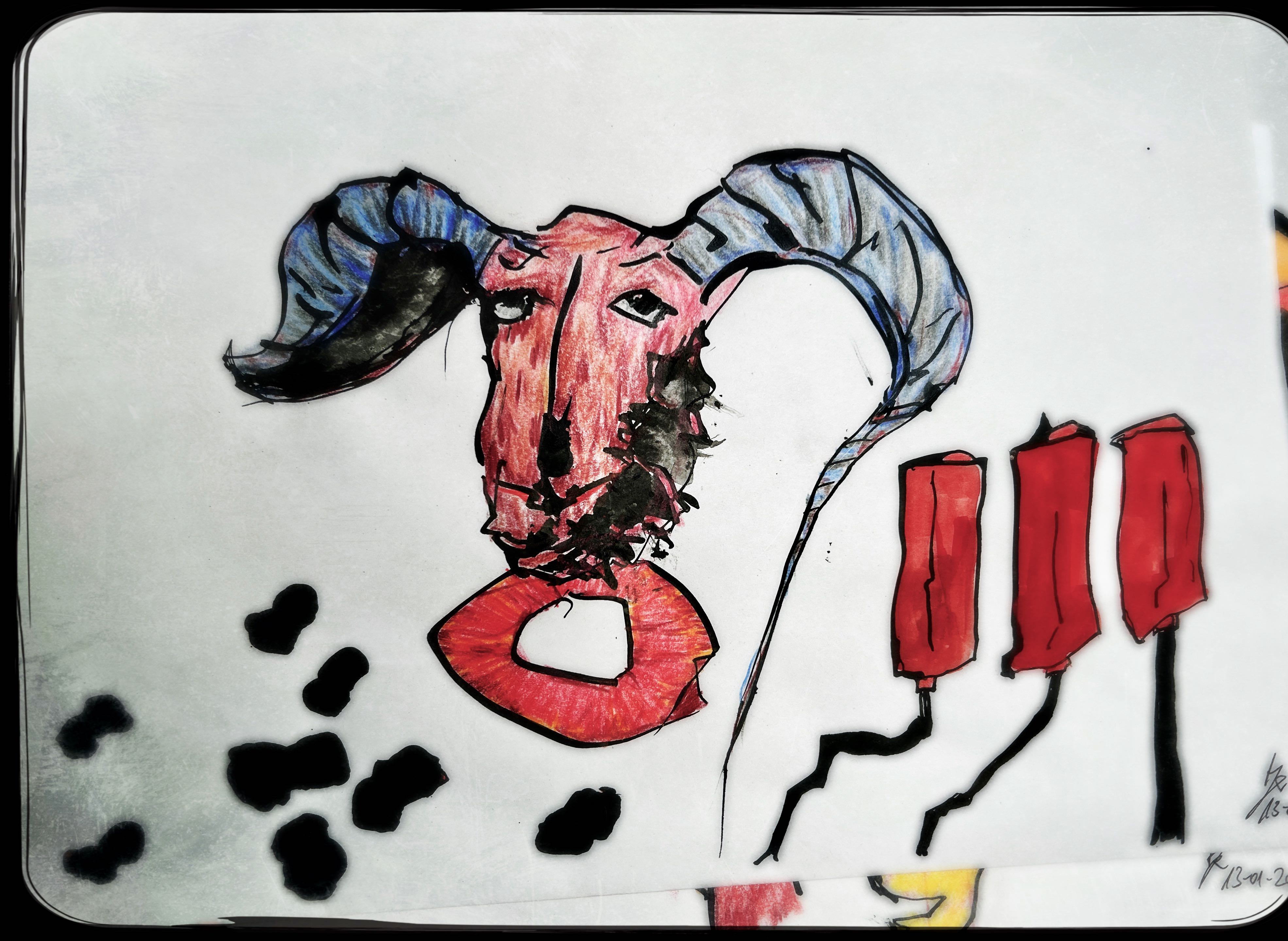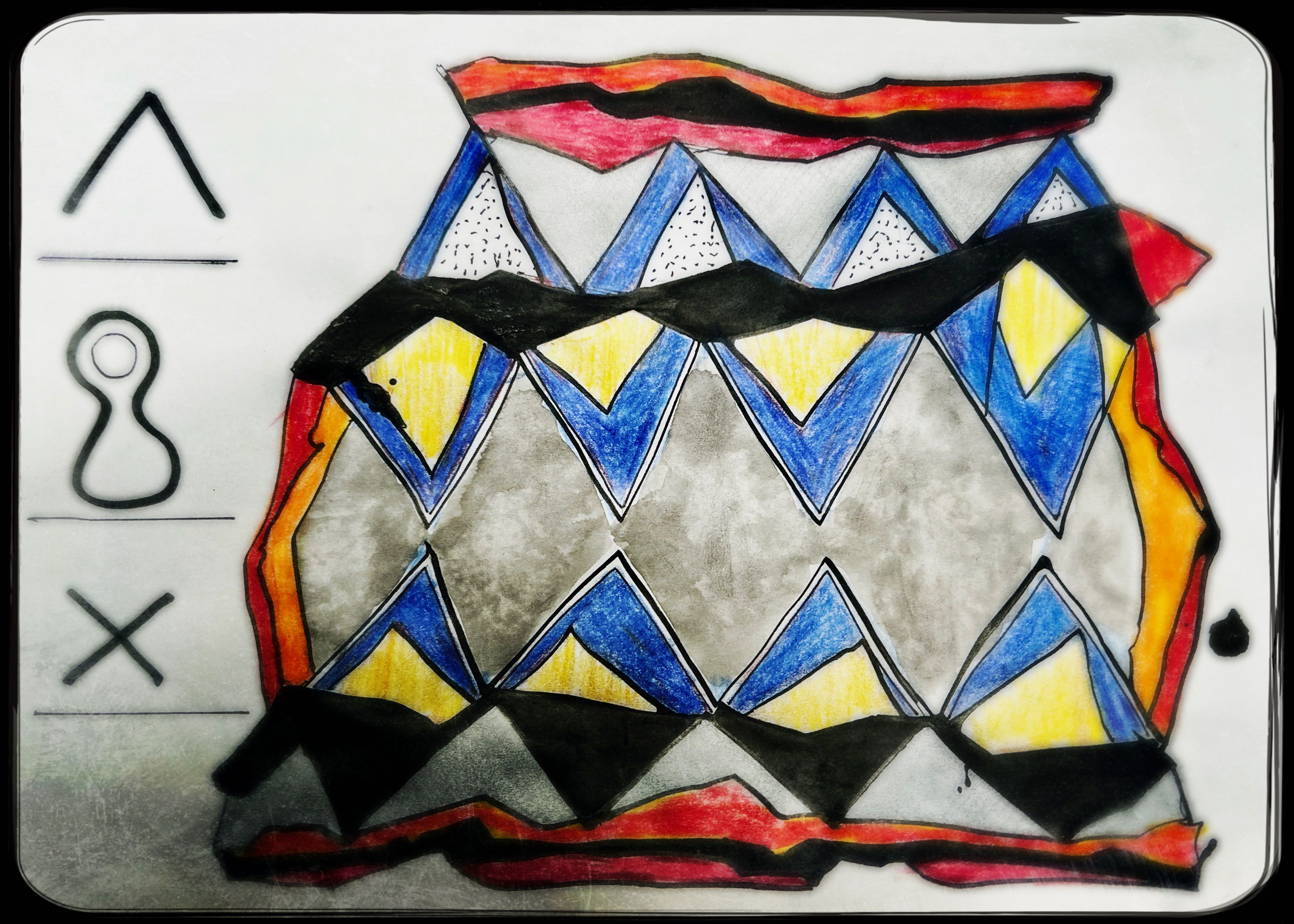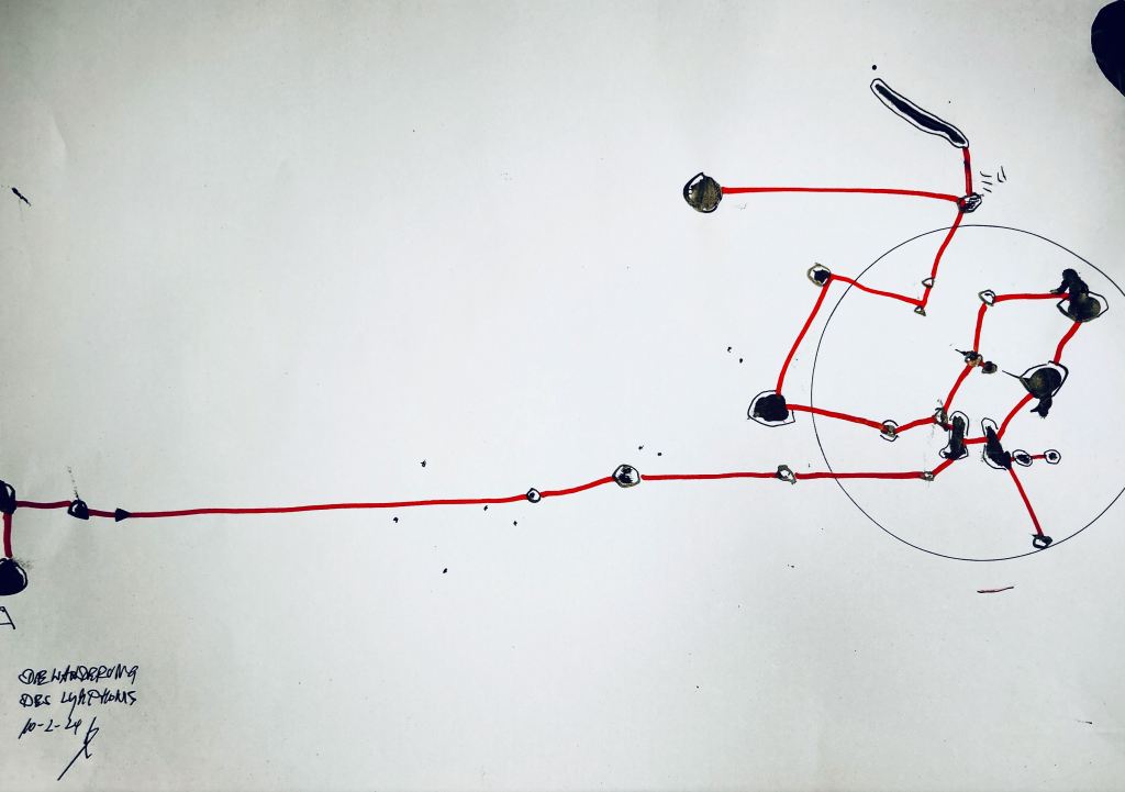 Und der dritte Durchlauf zum Thema startet nun mit dem Foto des letzten Papierobjektes, s. oben, und einigen daraus resultierenden hingeworfenen Digital- oder Aquarell- Skizzen: