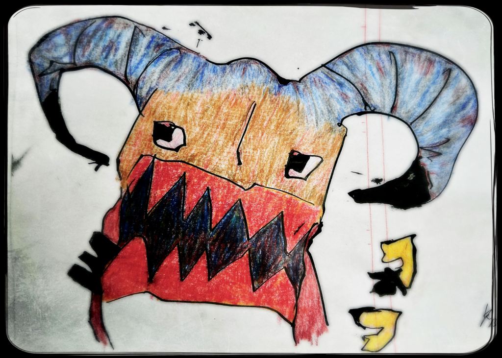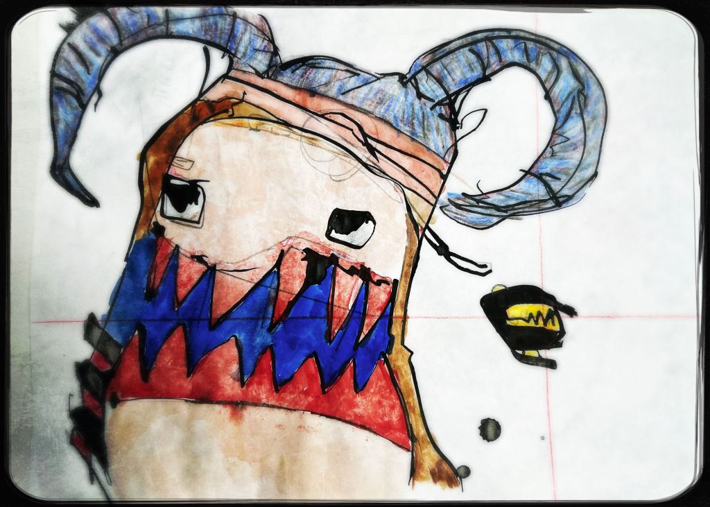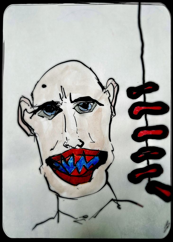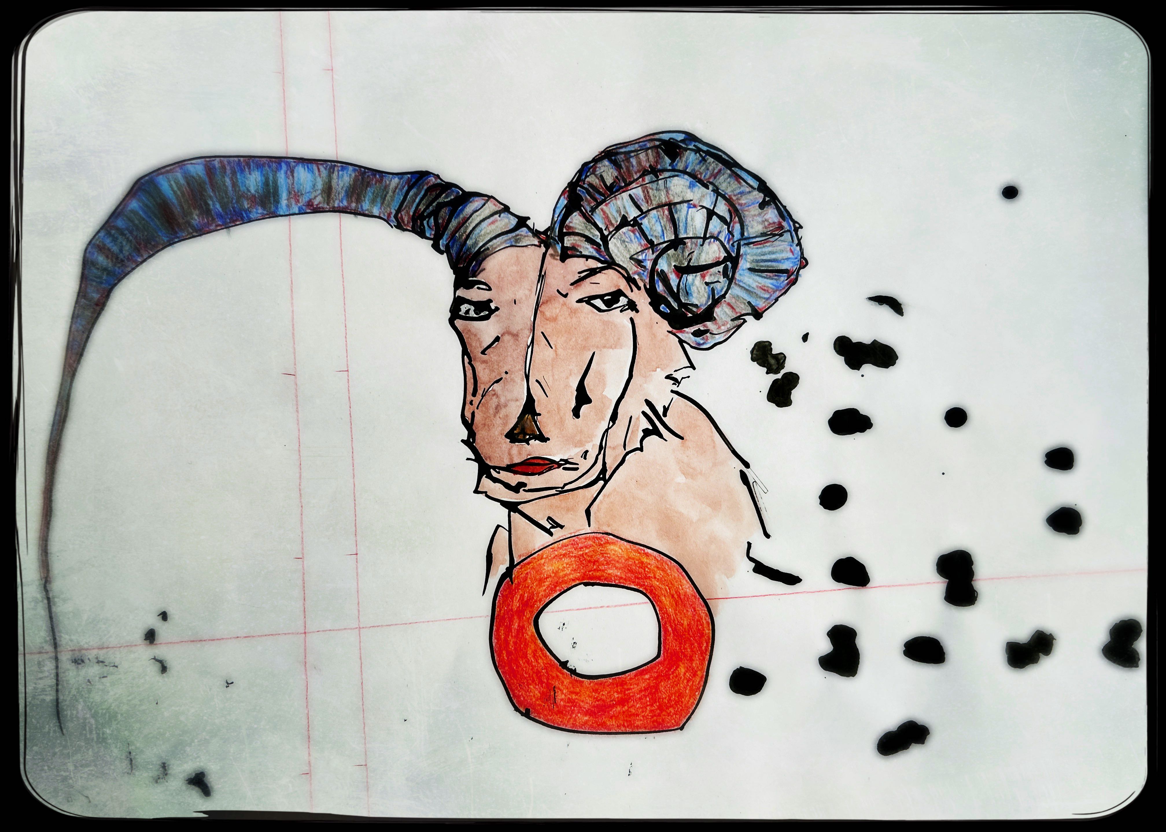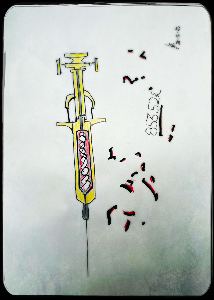 Und der dritte Durchlauf zum Thema startet nun mit dem Foto des letzten Papierobjektes, s. oben, und einigen daraus resultierenden hingeworfenen Digital- oder Aquarell- Skizzen: