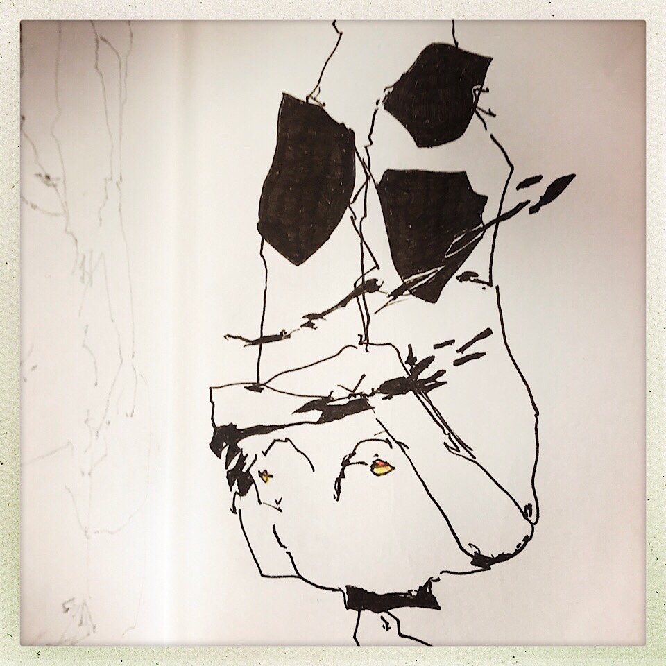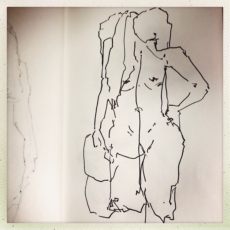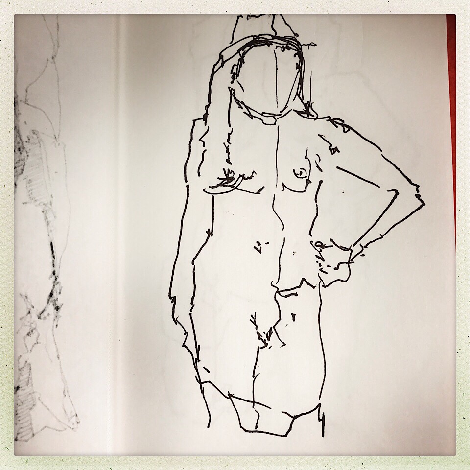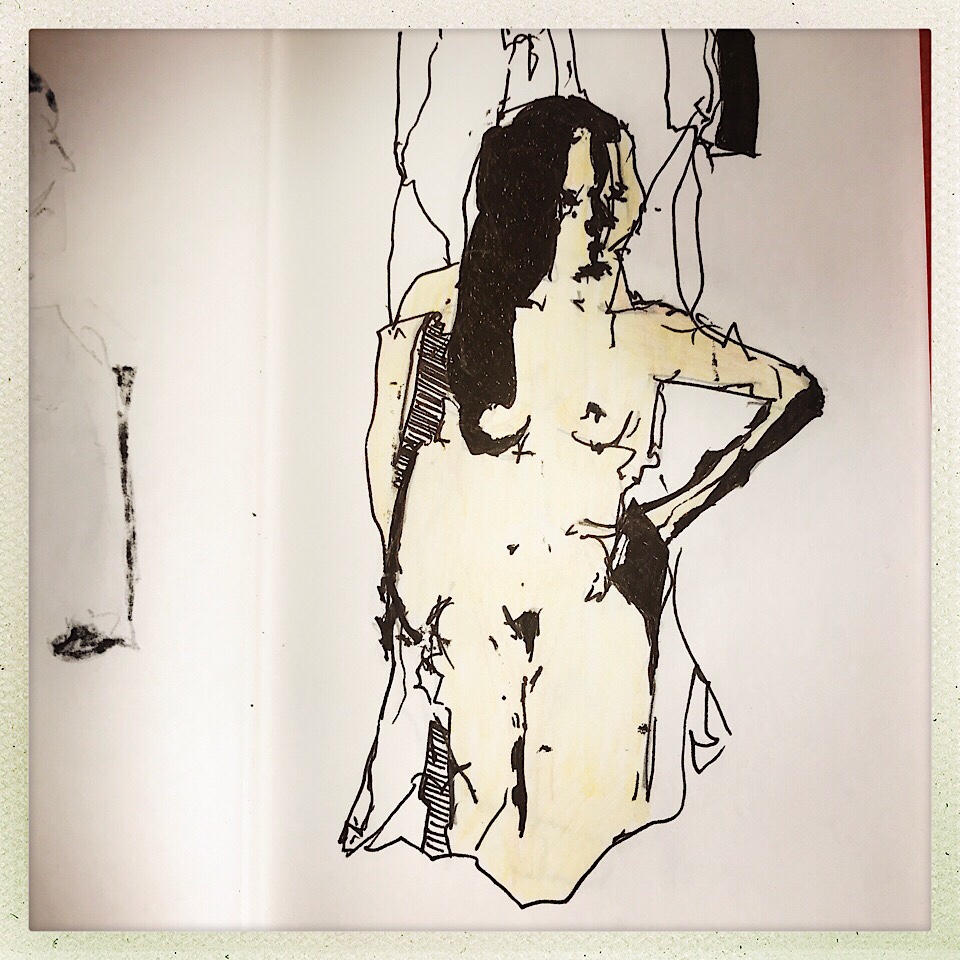 Und vom Aktzeichnen gestern in Heikes Kurs ist heute morgen nach dem Frühstück ebenfalls ratz fatz Folgendes übrig geblieben: