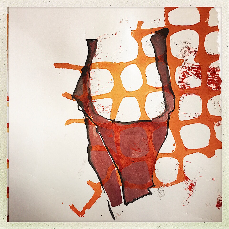 Im „Zwickelbüro“ vorvorletzte Woche verband sich das Netzhafte mit dem Stofflichen und dann ganz schnell mit der Kleidung zu dieser Tusche-Skizze.