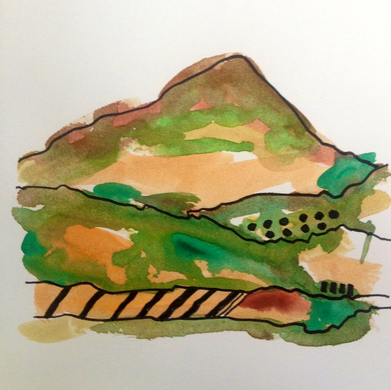 Splitter, Fetzen, Bruchstücke, wenn die zu einem Ganzen werden, findet Jürgen das mehr als interessant. Der Vorgang habe etwas Spielerisches, Experimentelles, meinte er zu mir, als wir heute bei ihm saßen. Auf seinem iPad hat er mit dem Programm „sketchbook“ seine kleinen Aquarellskizzen und einige Fotofetzen aus der Toskana zu Neuem zusammenbaut. Er wisse auch, dass dies mit „Photoshop“ sicherlich komfortabler zu machen sei, aber in „sketchbook“ sei das Zeichnerische, das Radieren, das Ausschneiden, die Komposition weniger technisch, mehr händisch.