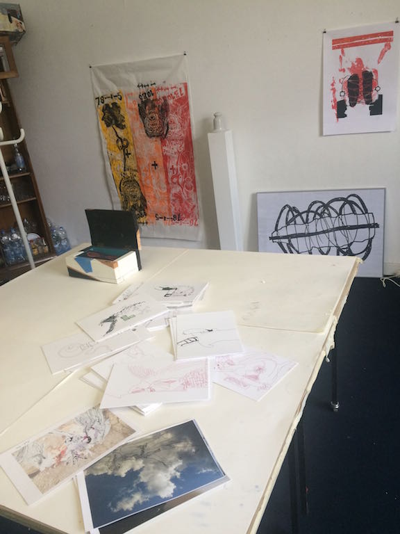 Alles kann zur Bühne werden. Jürgen testet das momentan durch. Und Wortkarten können auch eine Geschichte erzählen. Oder Assoziationen herausfordern. Und Druckreste können zu neuen Bühnenhintergründen zusammengeklebt werden.