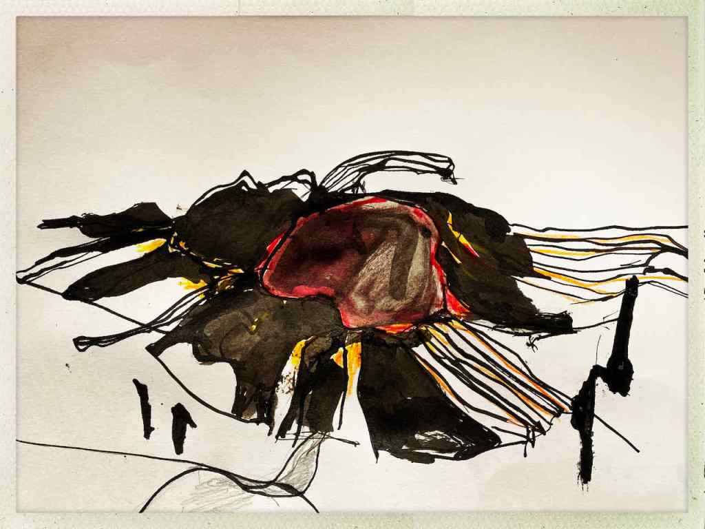 Mal mit dem Fahrrad und mal mit dem Auto bzw. zu Fuß: Jürgens Ziel ist in letzter Zeit oft der Hoogen Dyck. Der Ort ist sein Thema. Es findet ein fotografisches und zeichnerisches Abscannen statt. Mal ist die Ausbeute gering, mal gibt es mehr. Jeder Besuch bedeutet auch, das etwas geschieht oder geschehen ist. Der Ort verändert sich ja ständig und Jürgen auch und beide wirken aufeinander. Über die Philosophie von Orten müsste man auch mal was schreiben, meinte er zu mir.