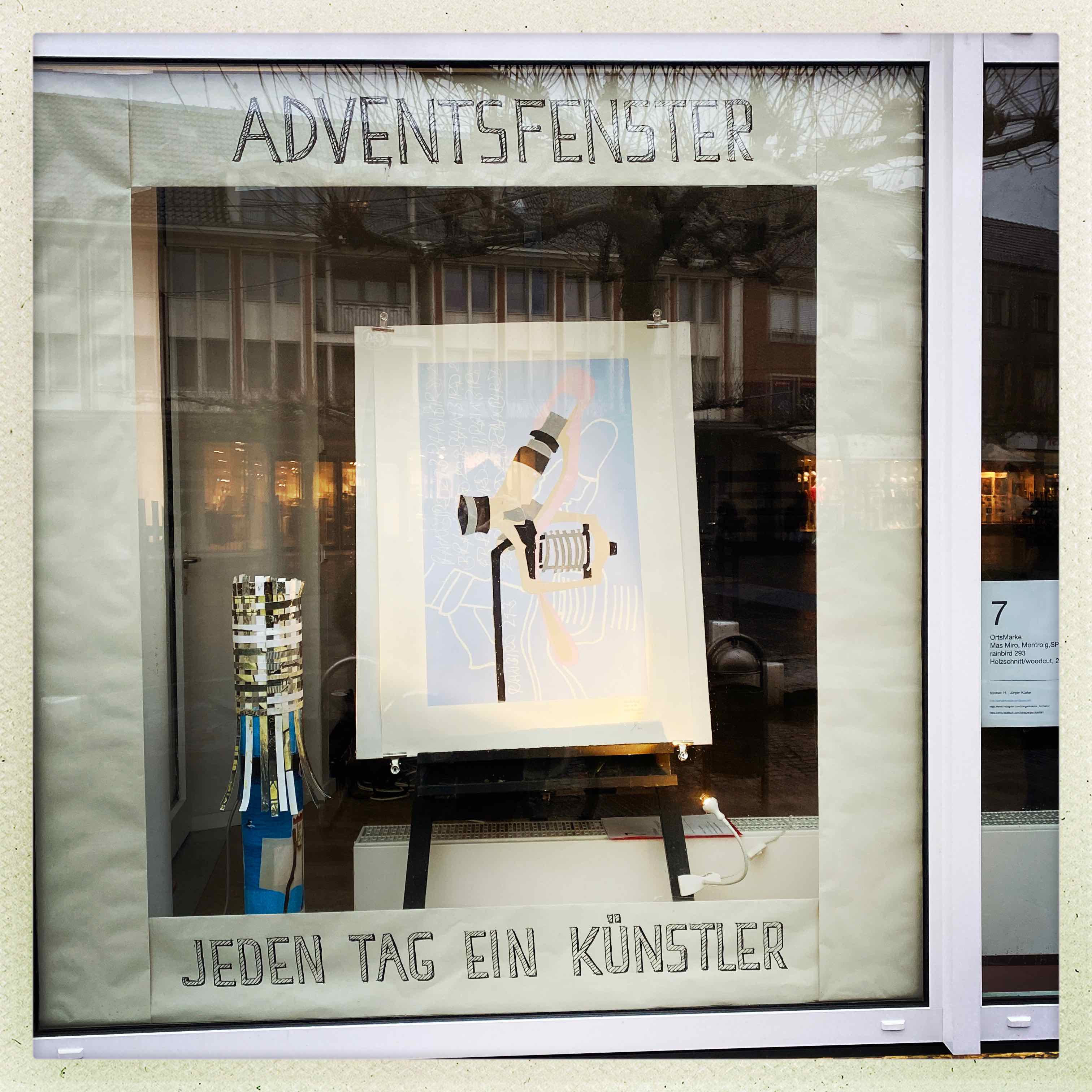 Also: Jürgen wurde gebeten an zwei Gruppenausstellungen teilzunehmen, einmal in Geldern, einmal in Viersen, nichts Großes, aber immerhin, und zwar werden an beiden Orten zwei Adventsfenster vorgehalten, in denen an jedem Tag vom ersten bis 24. Dezember im Wechsel Künstler der Region ein Werk zeigen.