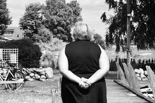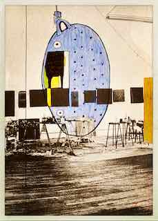 So hat Juergen es am liebsten: schneller Aufbau, drei Wandbilder, drei Objekte, ein kleiner Raum, eine Information am Zaun für die Besucher, fertig. Den Rest macht die Ausstellung selbst und die Besucher, wie z.B. Ule Rolff, die extra aus Reken angereist war. Danke, danke, liebe Ule!