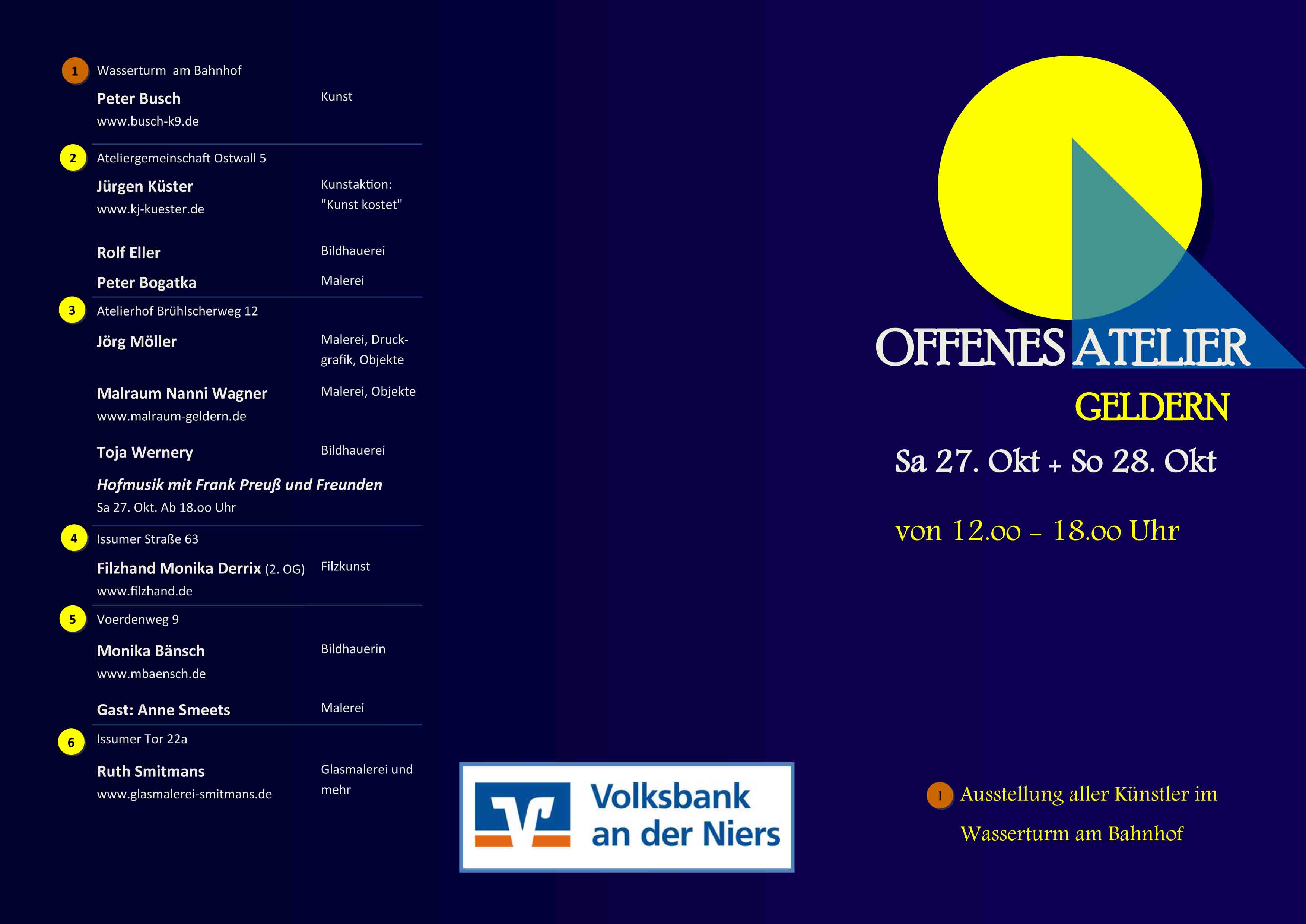 Nächstes Wochenende sind einige der Ateliers in Geldern wie in den Jahren zuvor für den Publikumsverkehr geöffnet. Juergen, Rudolf der Bildhauer und Boris der Maler sind auch mit dabei und freuen sich auf die Besucher.