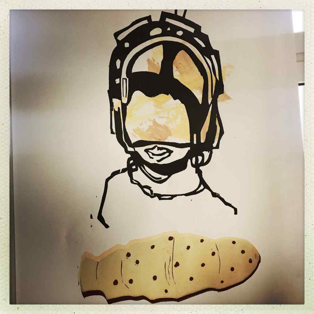 Zuerst habe er mal wieder eine Zeichnung gesetzt. Heute im Atelier. So Juergen. Danach habe er an einigen Hintergründen fuer die „Linolschnittedition BFT“ gearbeitet. Das, was in den letzten Tagen entstanden sei, habe er nun an seine Wand gebracht. Überhaupt die Wand: sie sei in den letzten Wochen zu seinem roten Faden geworden, denn dort lasse sich schön alles das, was entstehe und bedeutsam sein anbringen und zu einem Ganzen zusammenfügen. Rhizomartig halt!