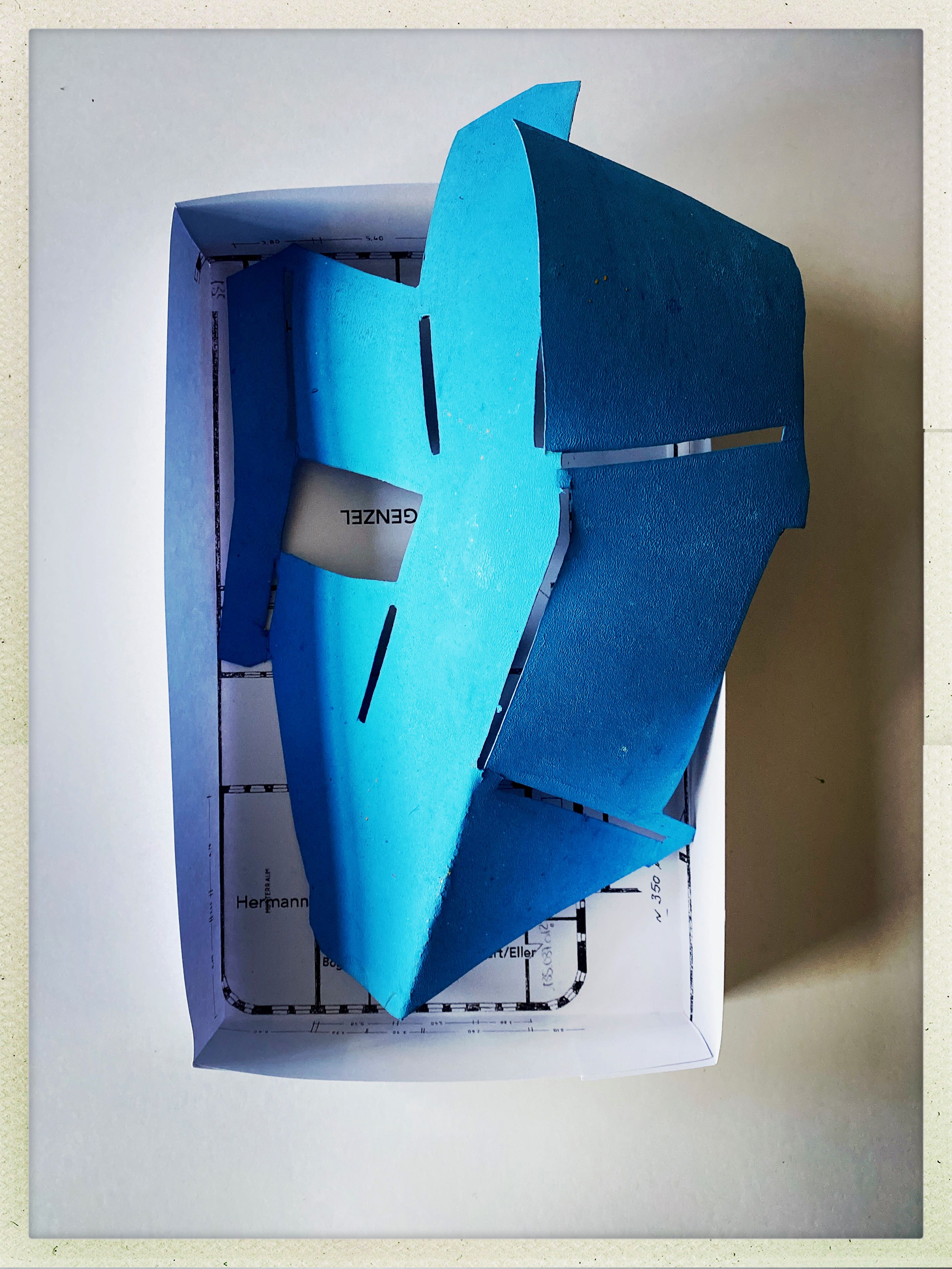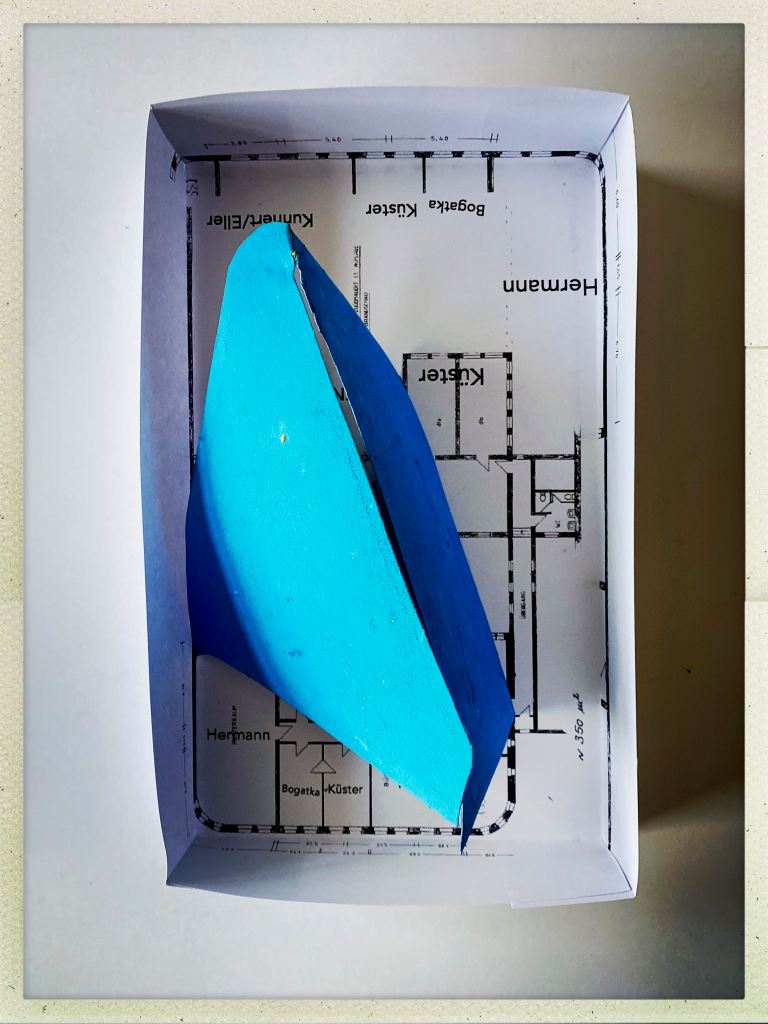 Und im Kopf geistert das hier: Der Zwickel und das Morgen? Der Zwickel und ein Körper? Neue Zwickelformen? Ein Positionspapier zum Zwickelbüro? Der Zwickel als großes Papierobjekt? Der Zwickel angedockt an Stoffe? Der Zwickel und die Tarnkappe? Der Zwickel und die Zeit? Wenn ich das so lese: Stoff für Jahre.