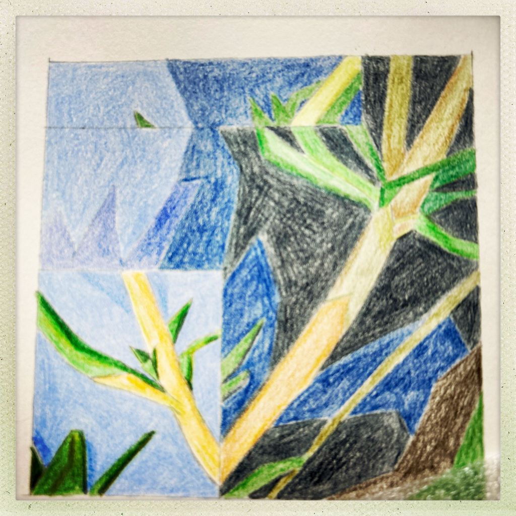Und Elke? Elke entwirft in kleinformatigen Buntstiftskizzen zeichnerisch Entwürfe für ihre Acrylbilder.