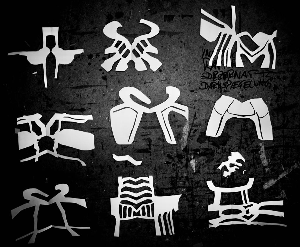 Wieder sind Fotos der Ausgangspunkt von Jürgens Arbeit. Es sind Zwickel-Fotos. Sie sind der Einstieg und Ausgangspunkt für Skizzen oder Zeichnungen, Scherenschnitte, Druckgrafisches und vielleicht ein Papierobjekt.