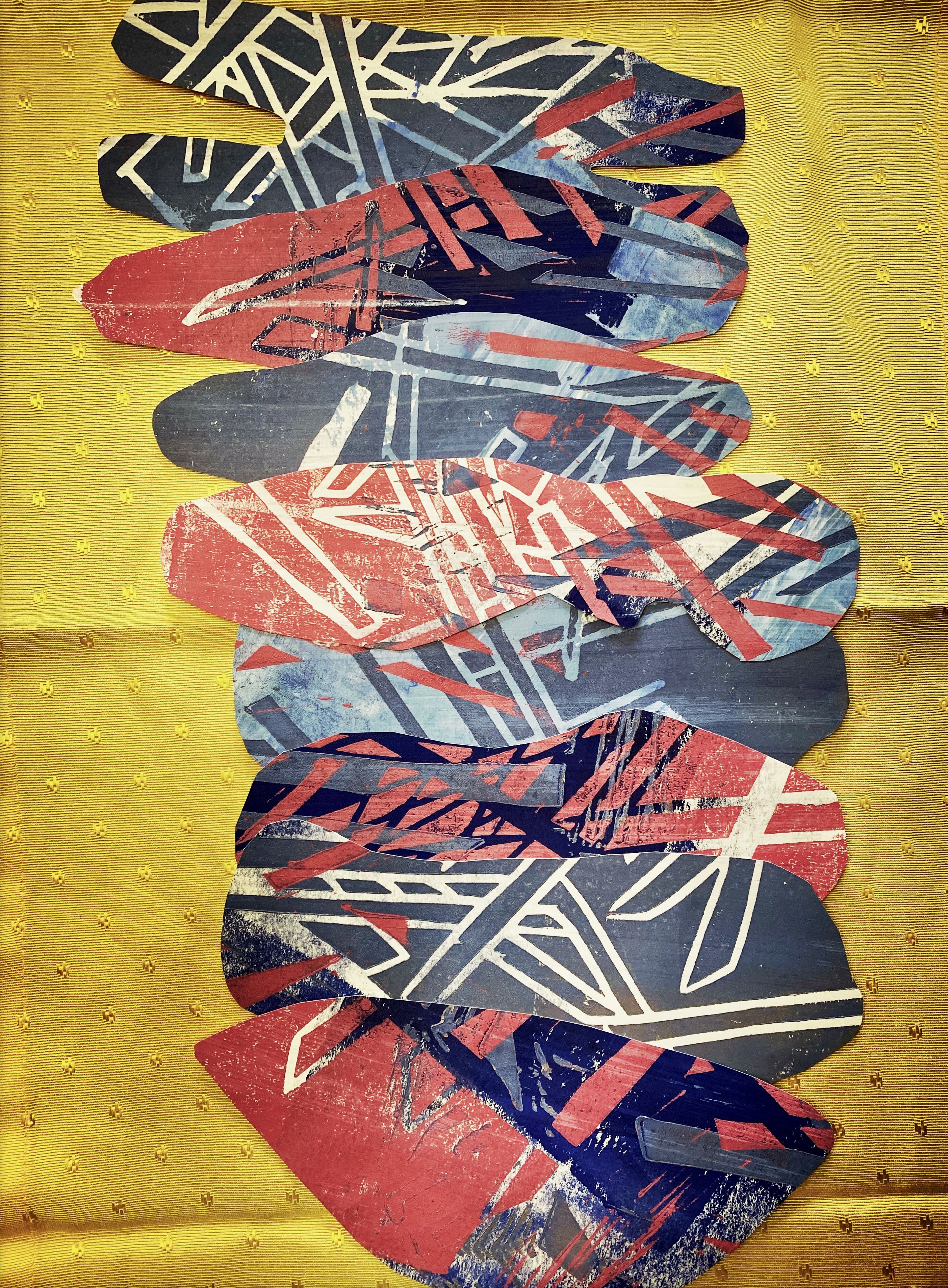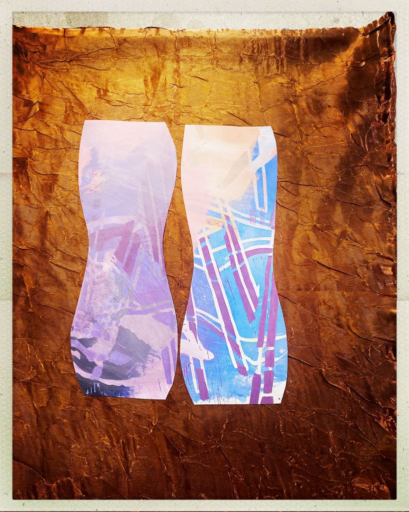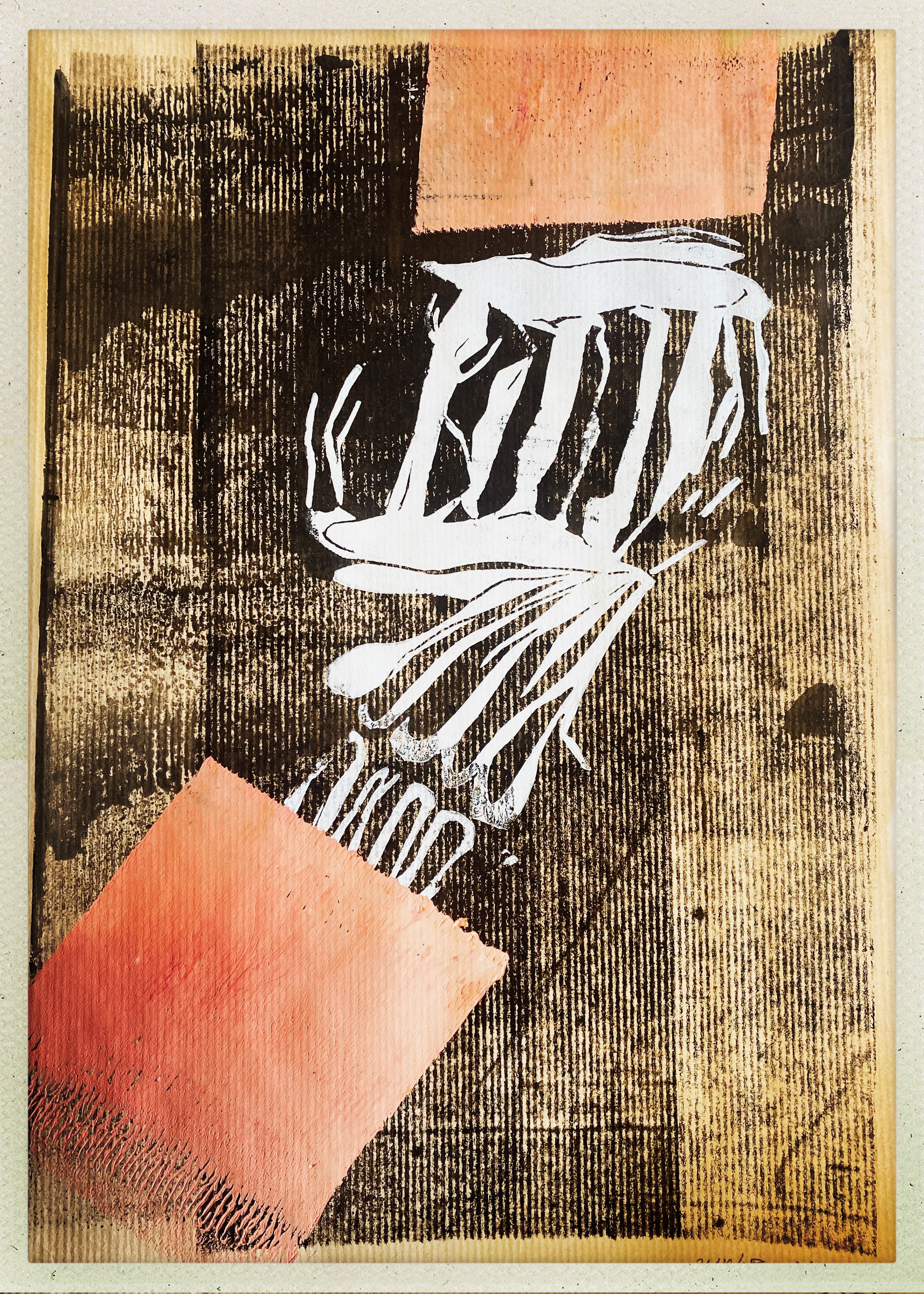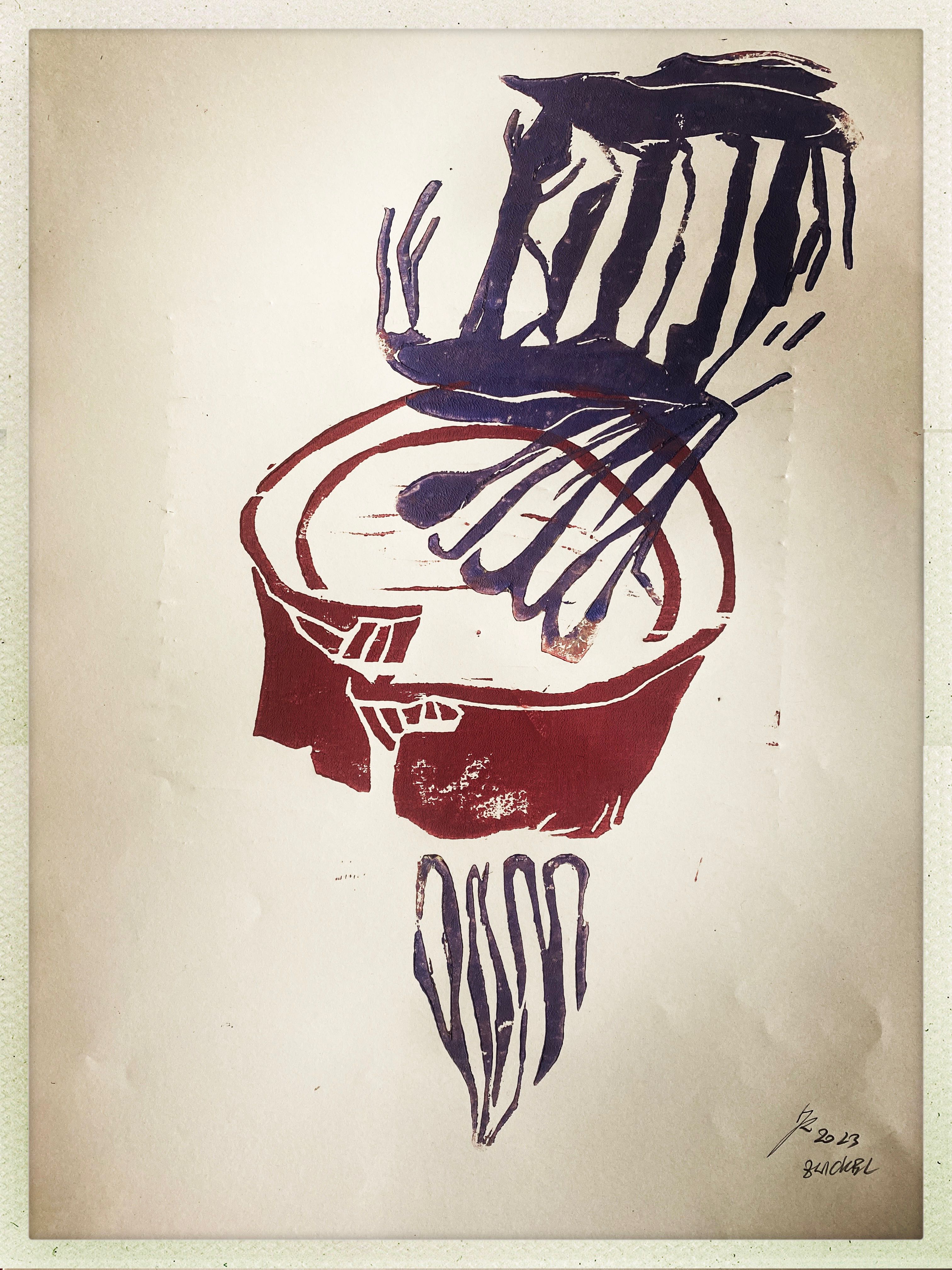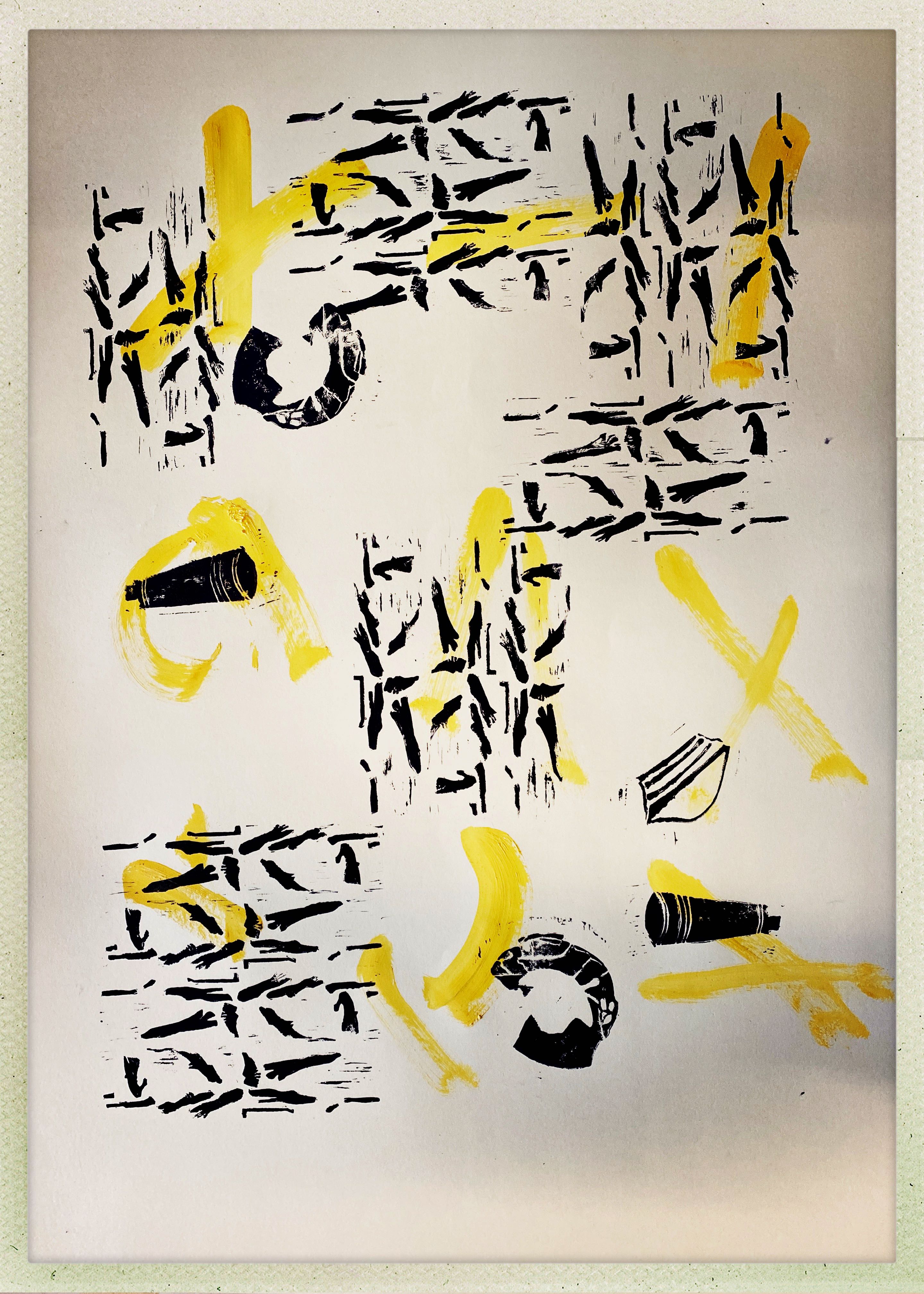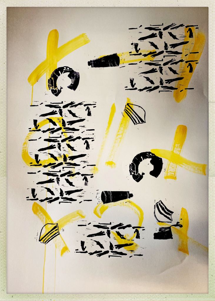 Auch in der Druckgrafik wird im Zwickelbüro viel experimentiert. Hier kommen verschiedene Drucktechniken des Hochdrucks zum Einsatz, wie beispielsweise der Linolschnitt oder der Holzschnitt. Der Mix und die Durchmischung verschiedener Elemente soll Dynamik und Lebendigkeit und Offenheit wiedergeben. Durch den Einsatz von Farben, Schablonen und unterschiedlichen Papieren, auch Restepapieren, entstehen hier einzigartige Drucke mit einem hohen künstlerischen Anspruch, primär orientiert am Motiv des Zwickels.