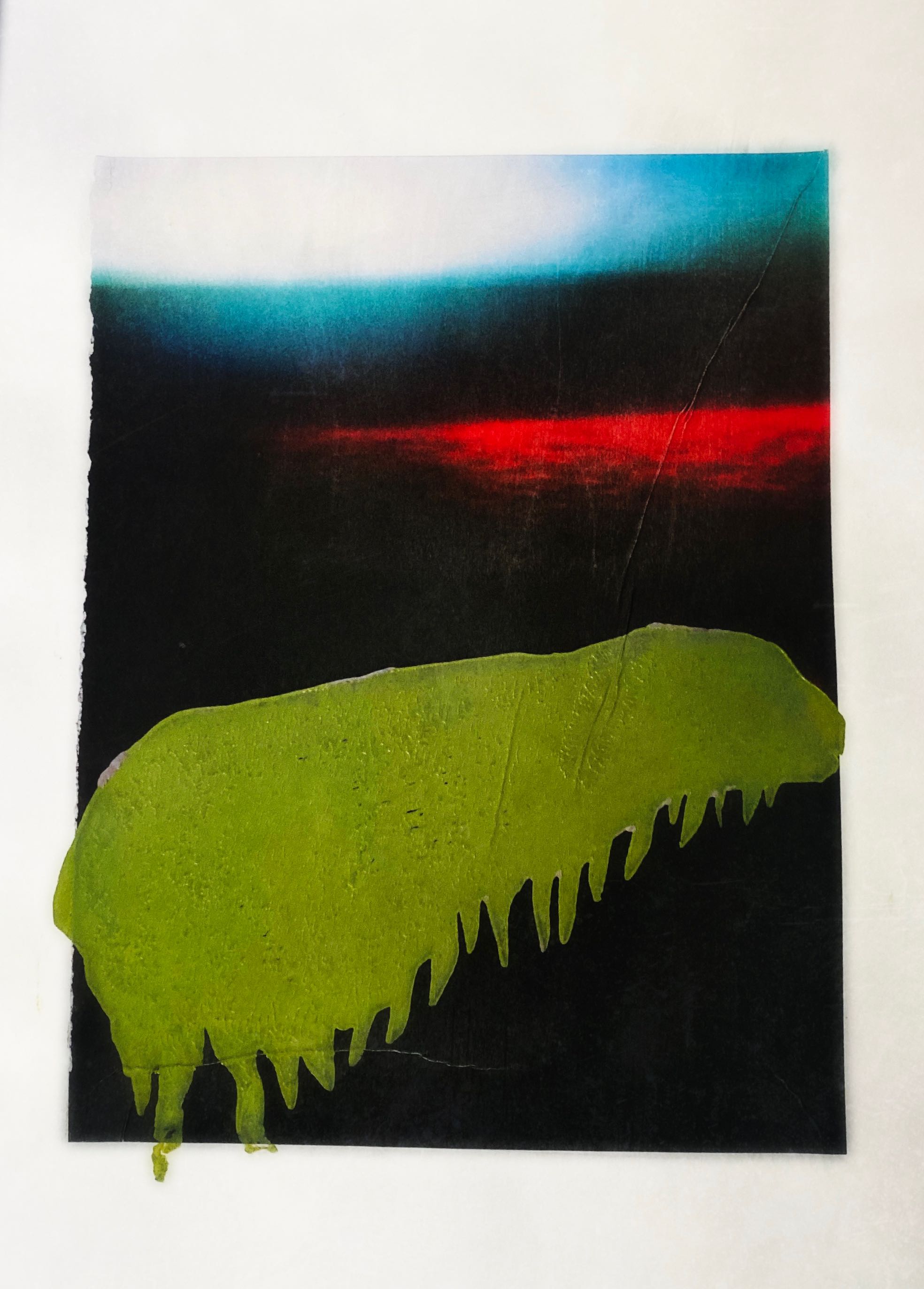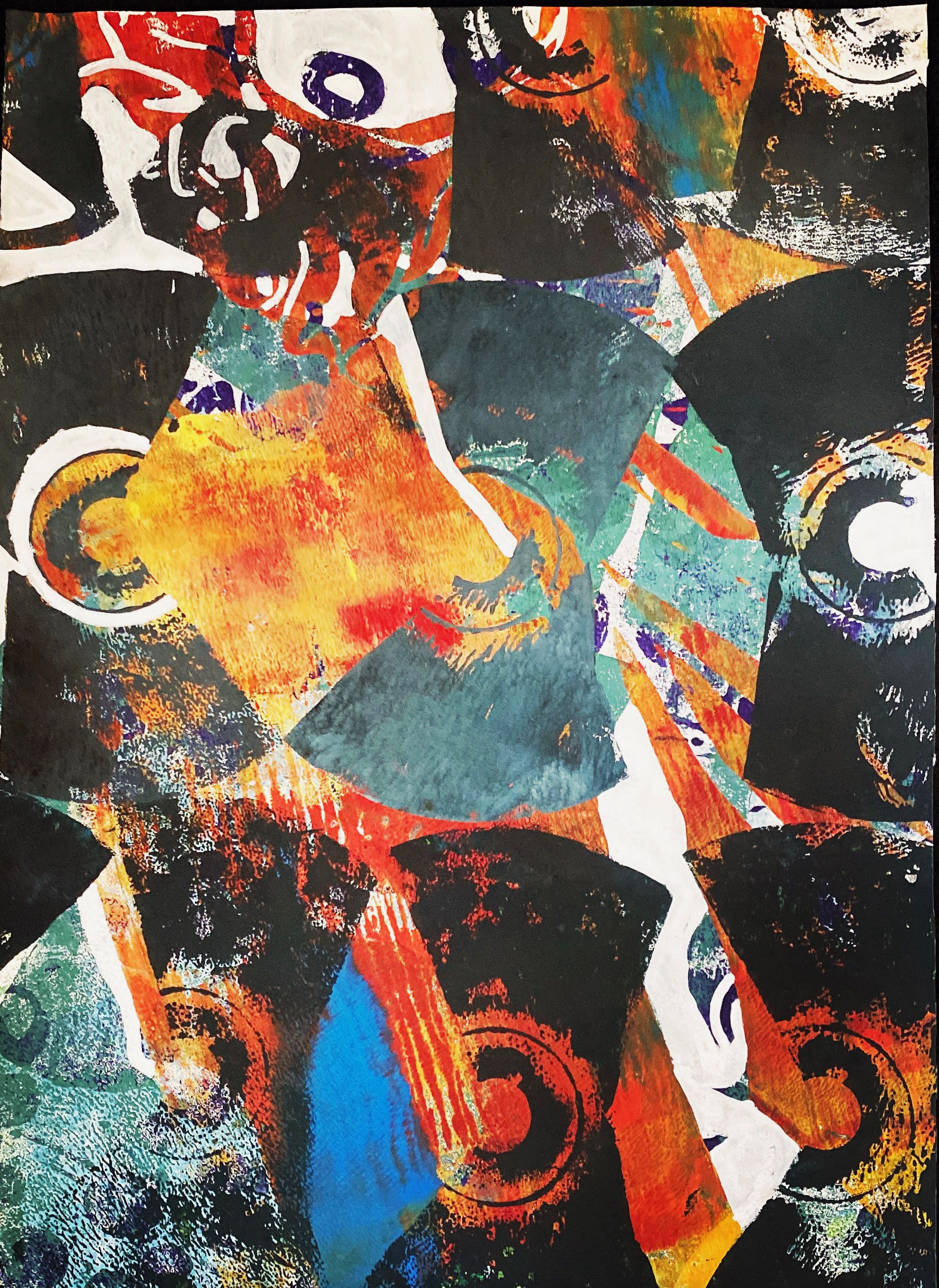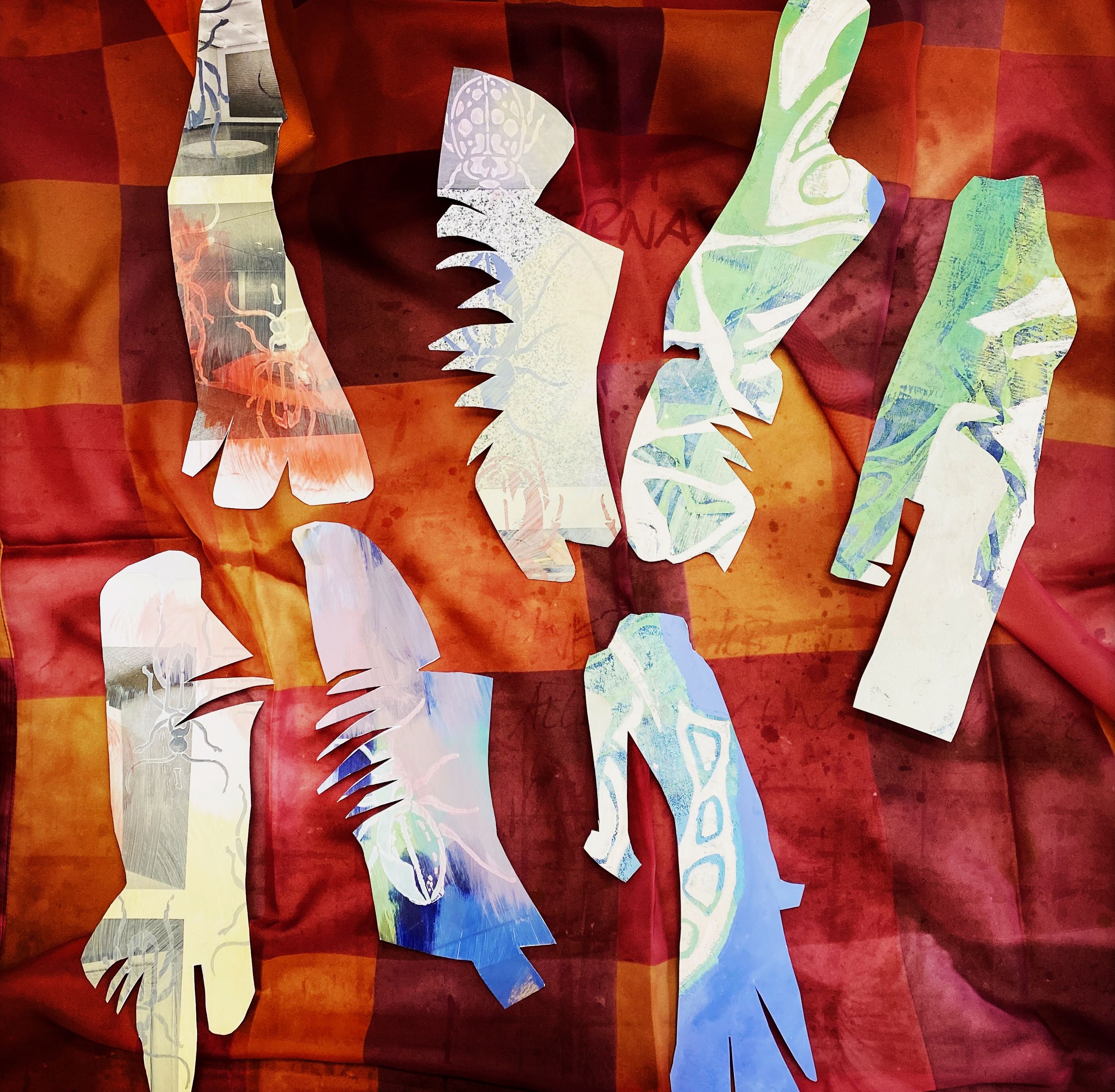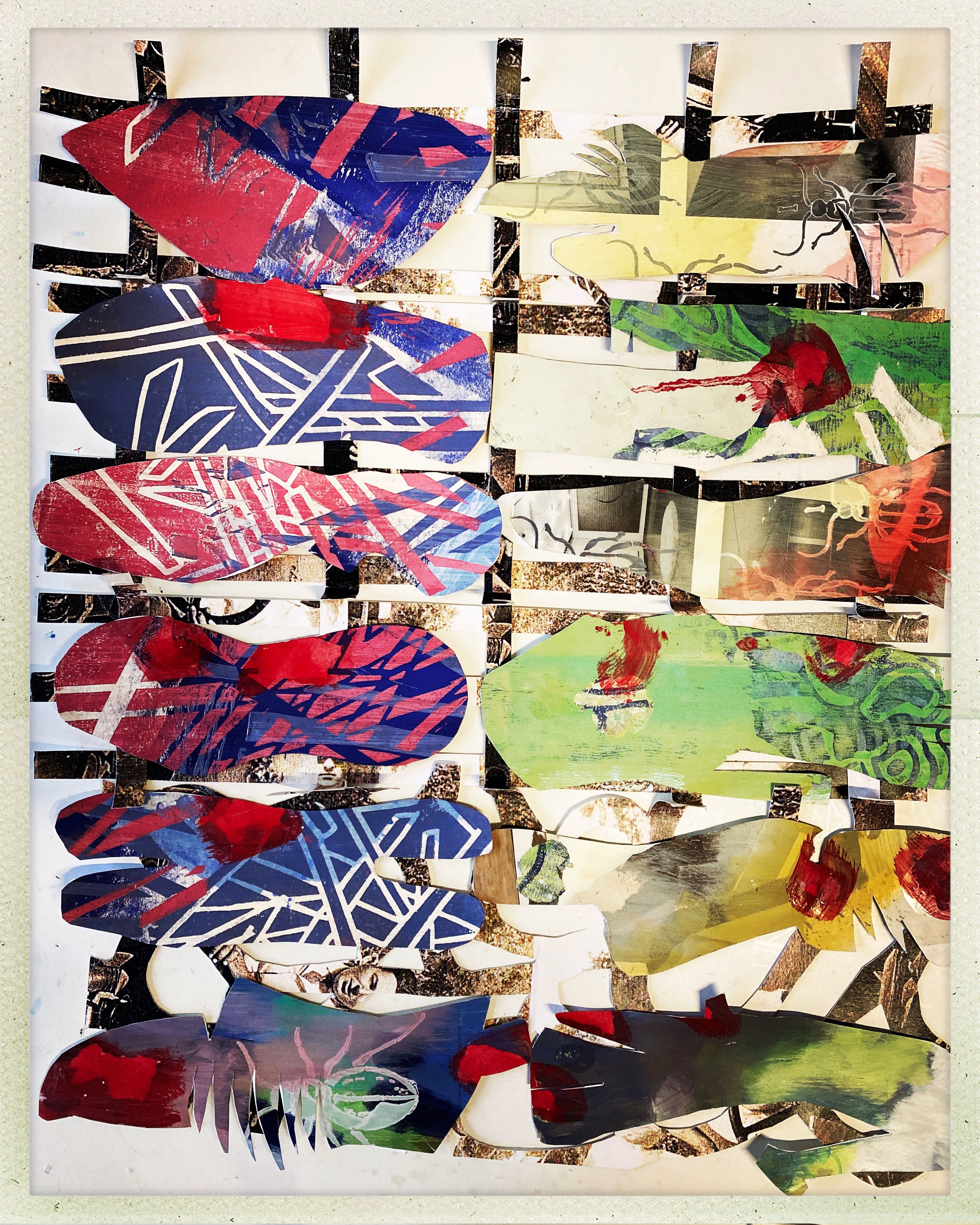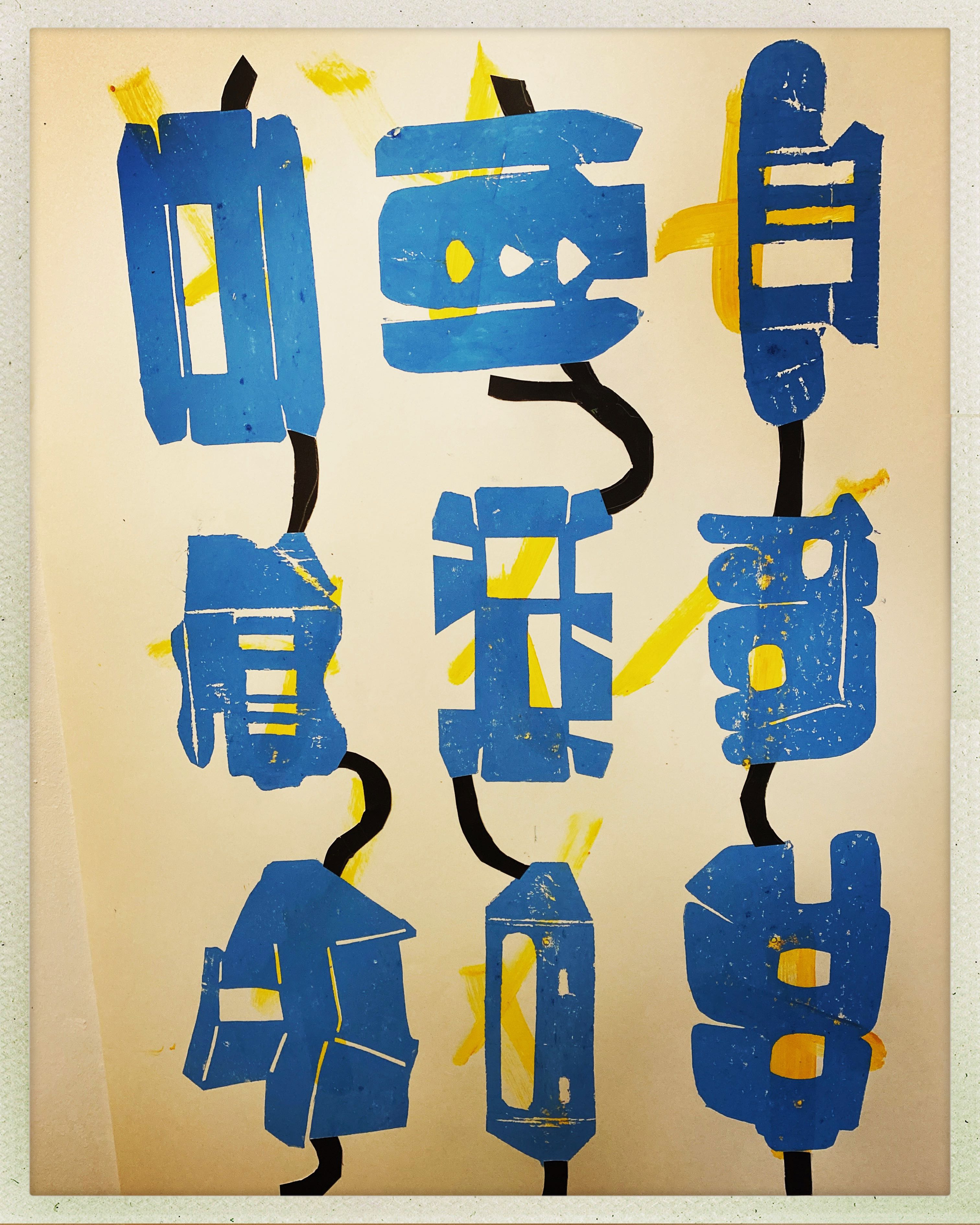 Auch in der Druckgrafik wird im Zwickelbüro viel experimentiert. Hier kommen verschiedene Drucktechniken des Hochdrucks zum Einsatz, wie beispielsweise der Linolschnitt oder der Holzschnitt. Der Mix und die Durchmischung verschiedener Elemente soll Dynamik und Lebendigkeit und Offenheit wiedergeben. Durch den Einsatz von Farben, Schablonen und unterschiedlichen Papieren, auch Restepapieren, entstehen hier einzigartige Drucke mit einem hohen künstlerischen Anspruch, primär orientiert am Motiv des Zwickels.