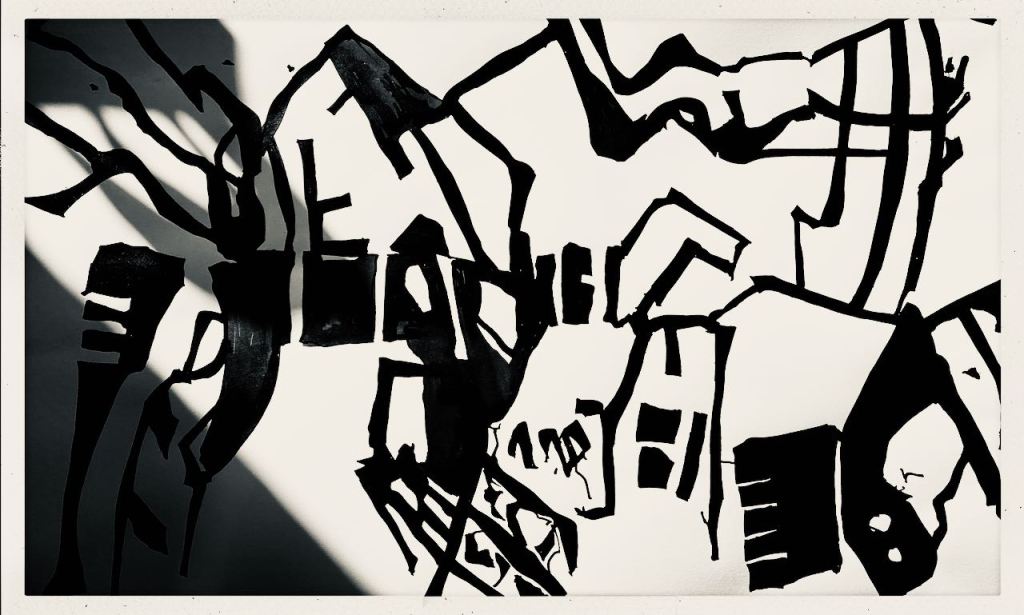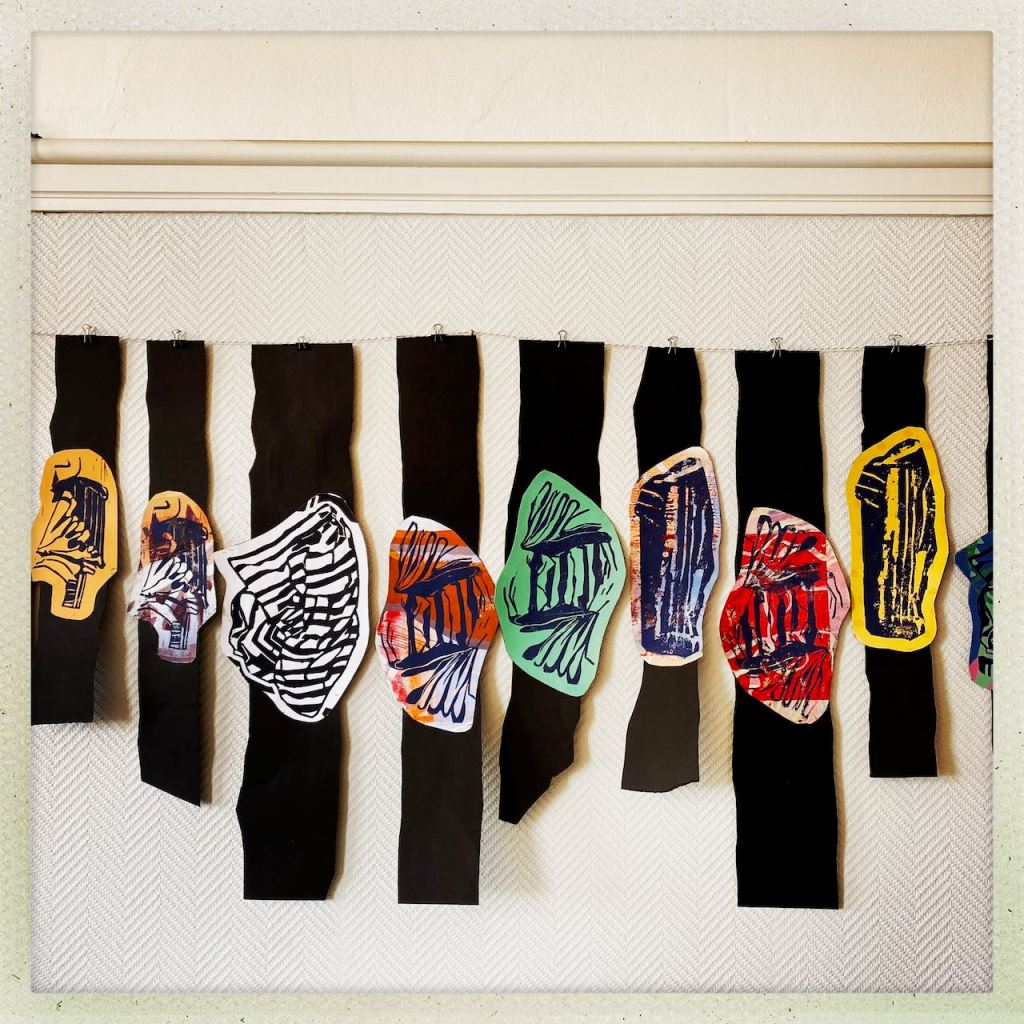 Ewiges Thema ist zwischen den Beiden ist auch das Erzeugen von Hintergründen. Jürgen konzentrierte sich diesmal auf Punkte, , gerollte Streifen und gestisch-malerische Akzente. Antje benutze alte Druckstöcke von Jürgen um sie in der malerischen Bearbeitung zu Hintergründen umzuwandeln.
