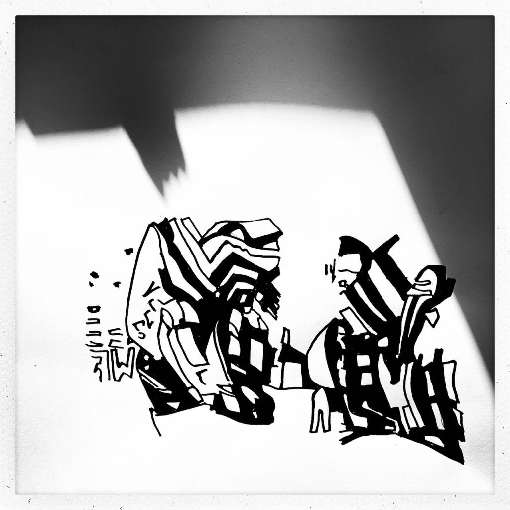 Zweieinhalb Tage lang haben Antje und Jürgen im „Zwickelbüro“ verbracht. Das tun sie zweimal im Jahr im Frühjahr und Herbst in Jürgen Atelier, schon seit Jahren. Sie treffen sich, um dem Zwickel auf die Spur zu kommen und um Kunstpraktische oder Theoretisches während des Arbeitens zu diskutieren.